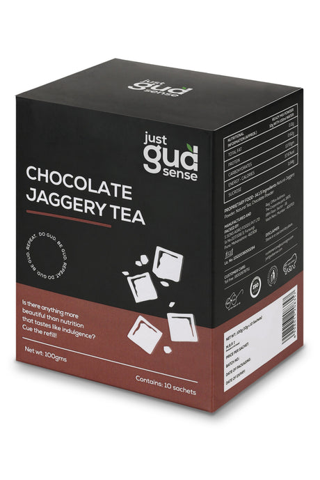 Just Gud Sense Chocolate Jaggery Tea Premix, 100g (10 sachets of 10 grams each)