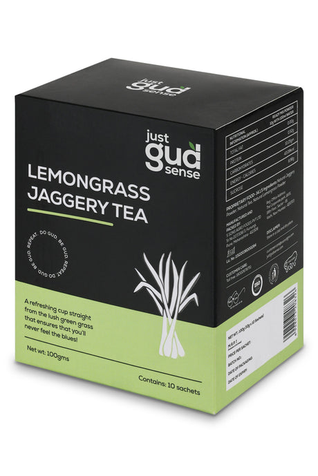 Just Gud Sense Lemon Grass Jaggery Tea Premix, 100g (10 sachets of 10 grams each)