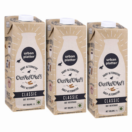 Urban Platter OatWOW Classic Oat Beverage, 1 Litre [Plant-based / Milk Alternative][Pack of 3]