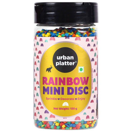 Urban Platter Rainbow Mini Disc Sprinkles, 150g (Dairy-Free Tiny Decorative Sprinkles for Cuunitakes, Cakes, Brownies, Doughnuts, Cookies and Ice Creams)