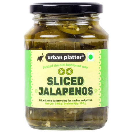 Urban Platter Sliced Jalapenos, 340g [ Tangy & Spicy, Great Topping for Pizza, Tacos, Nachos]