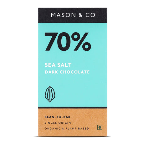 Mason & Co. 70% Sea Salt Dark Organic Exotic Artisanal Chocolate Bar, 60g