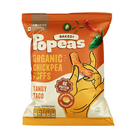 Nourish Organics Popeas Organic Chickpea Protein Puffs - Tangy Taco, 20gm (Gluten Free)