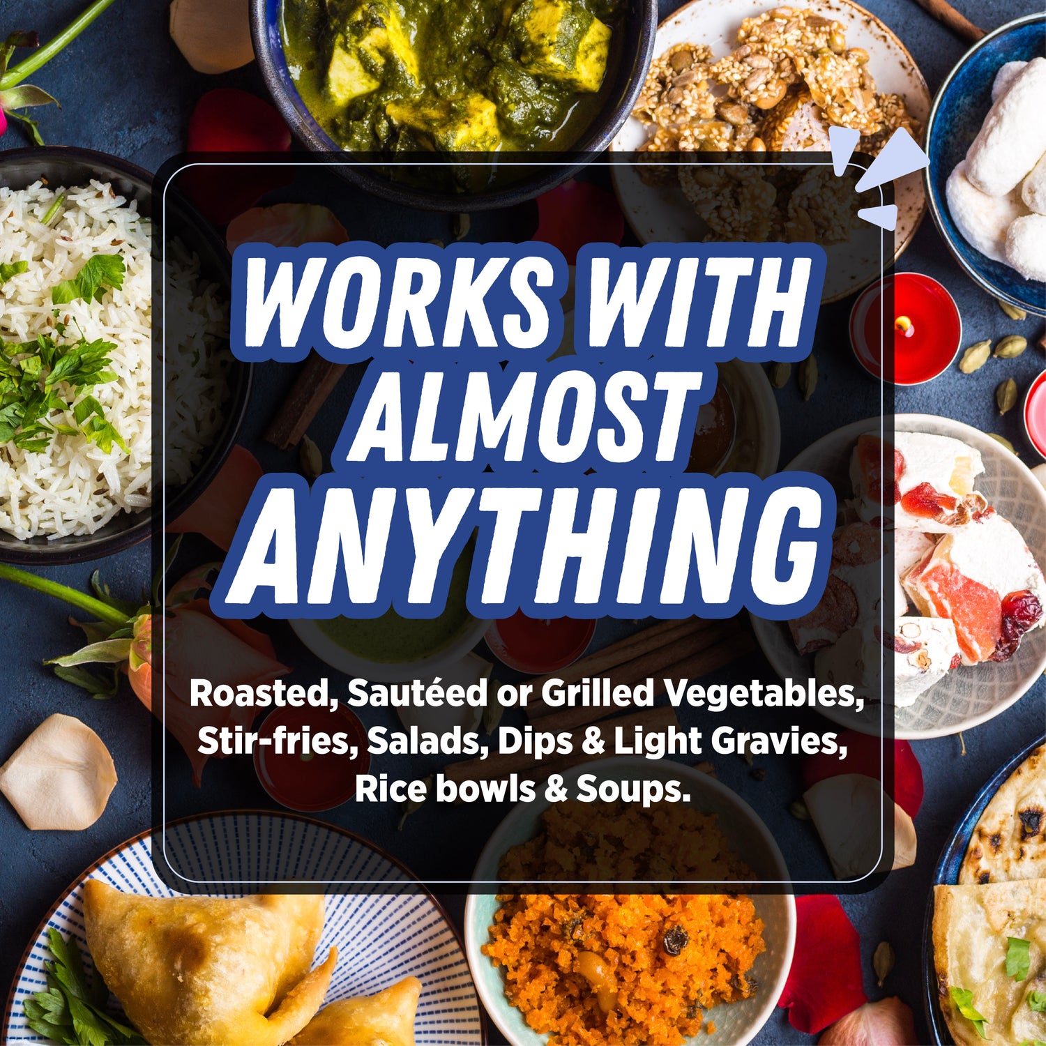Boosts flavour in paneer, stir-fries, fries, rice bowls, soups, curries, stews, roasted veggies, pasta, and marinades. Works beautifully in both Indian and global kitchens.
