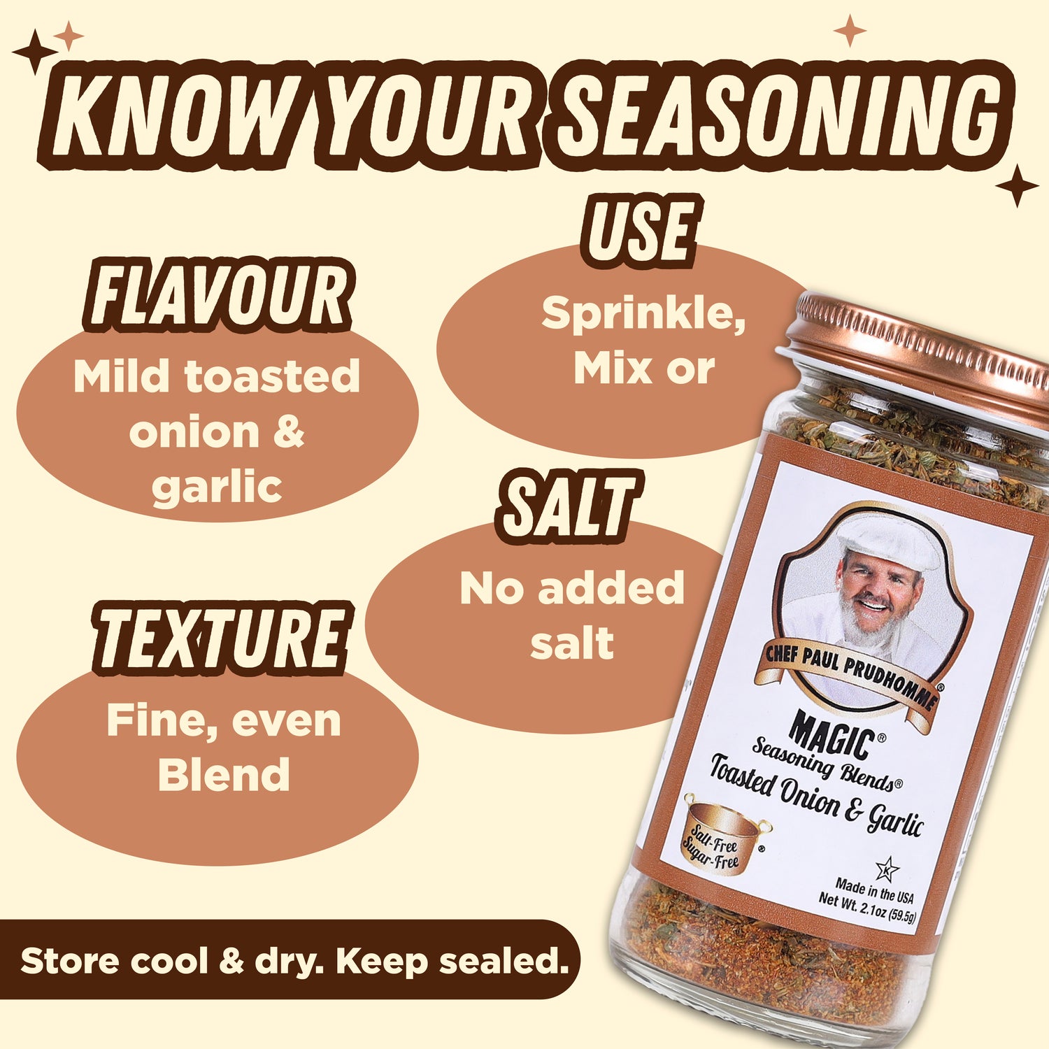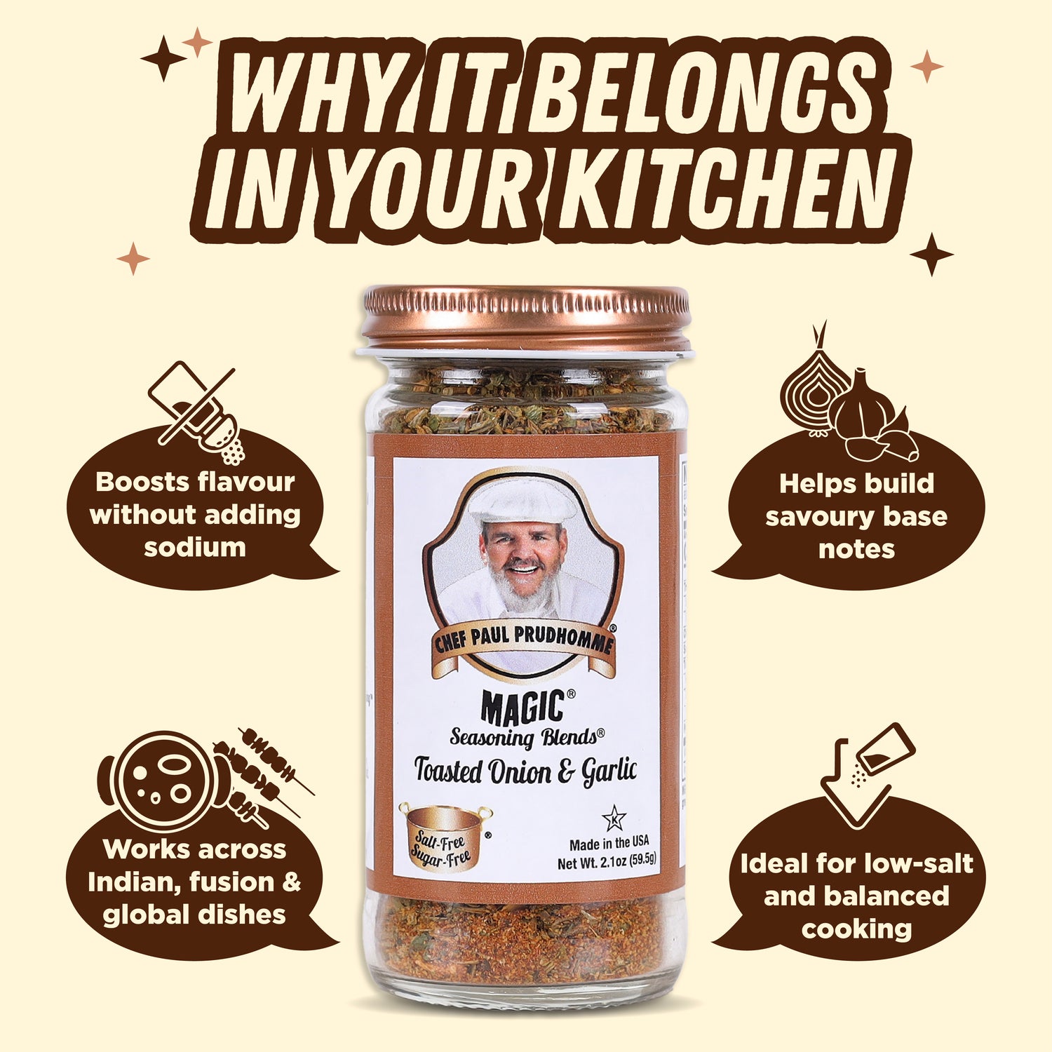 Chef Paul Prudhomme Toasted Onion & Garlic Magic Seasoning Blends, 59g (Salt-Free, Sugar-Free | Six Spice Flavor-Packed Blend)