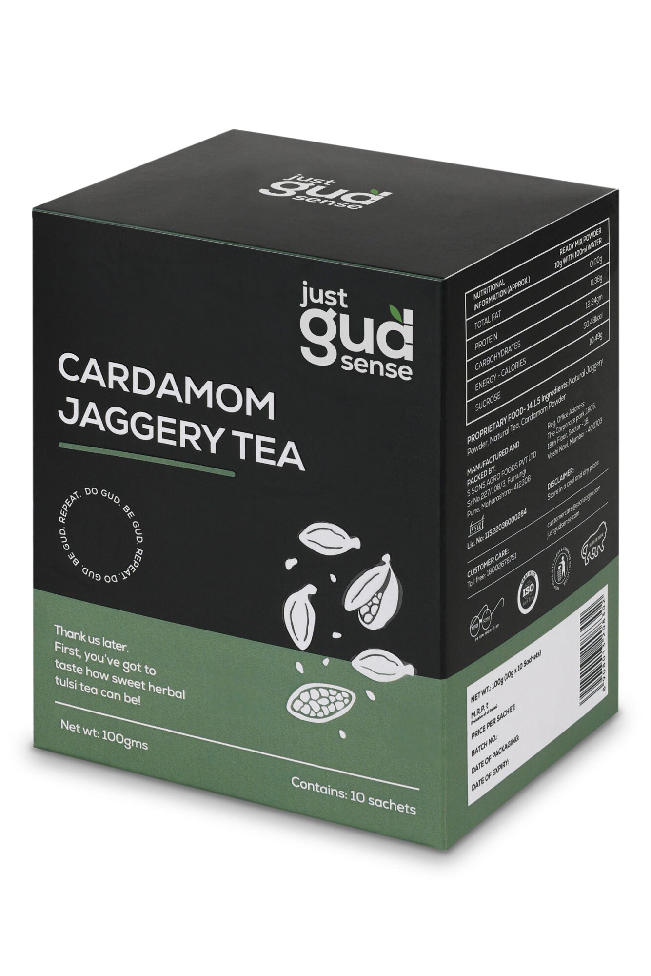 Just Gud Sense Cardamom Jaggery Tea Premix, 100g (10 sachets of 10 grams each)