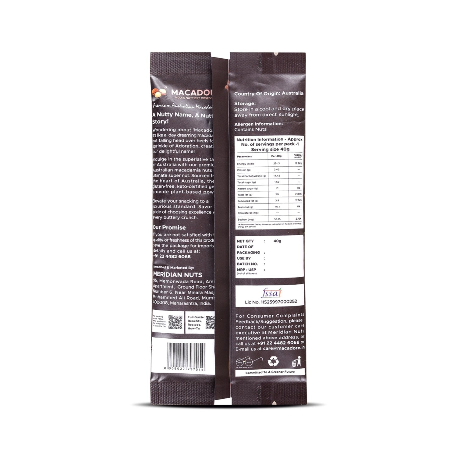 Macadore Pure Australian Raw Macadamia Nuts, 40g