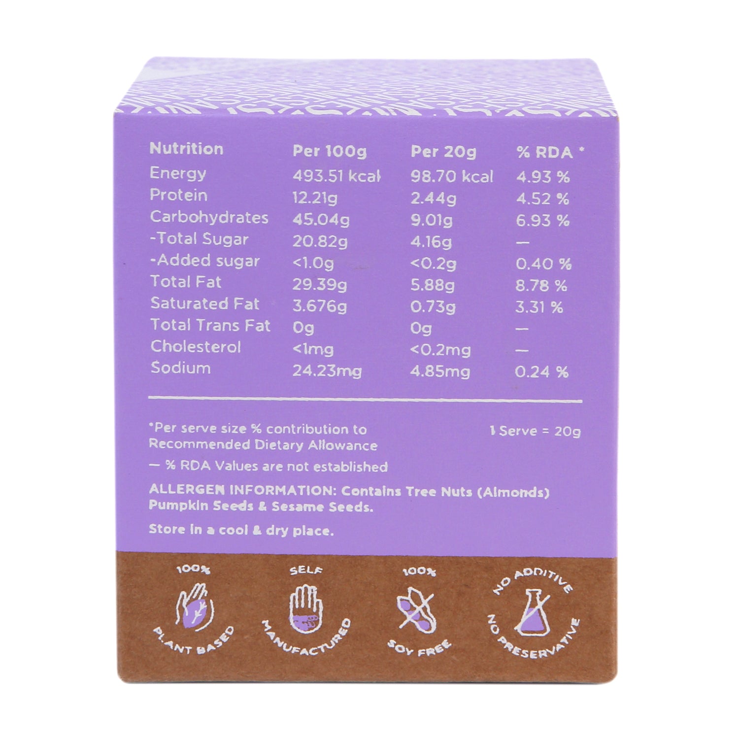 Earthy and nutrient-dense, this bite blends sesame, amaranth, moringa, flax, chia, pumpkin seeds, almonds, and dates.