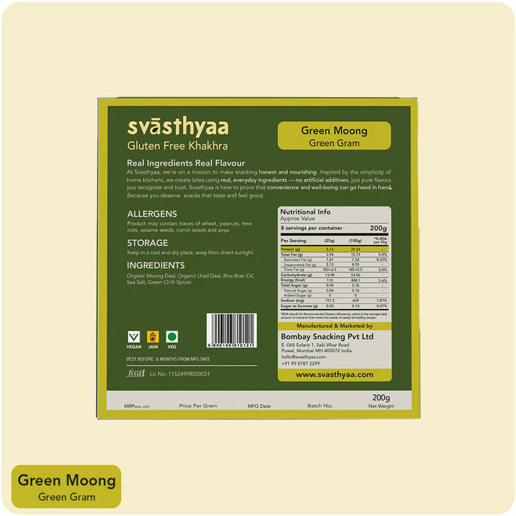 Svasthyaa Green Moong|High Protein Khakra, 200g