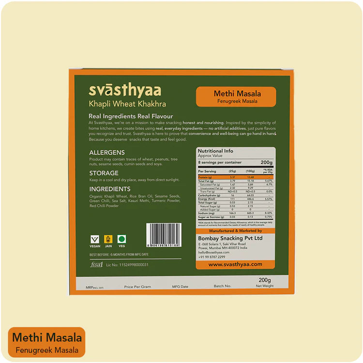 Svasthyaa Methi Masala I Khapli Wheat Khakhra, 200g