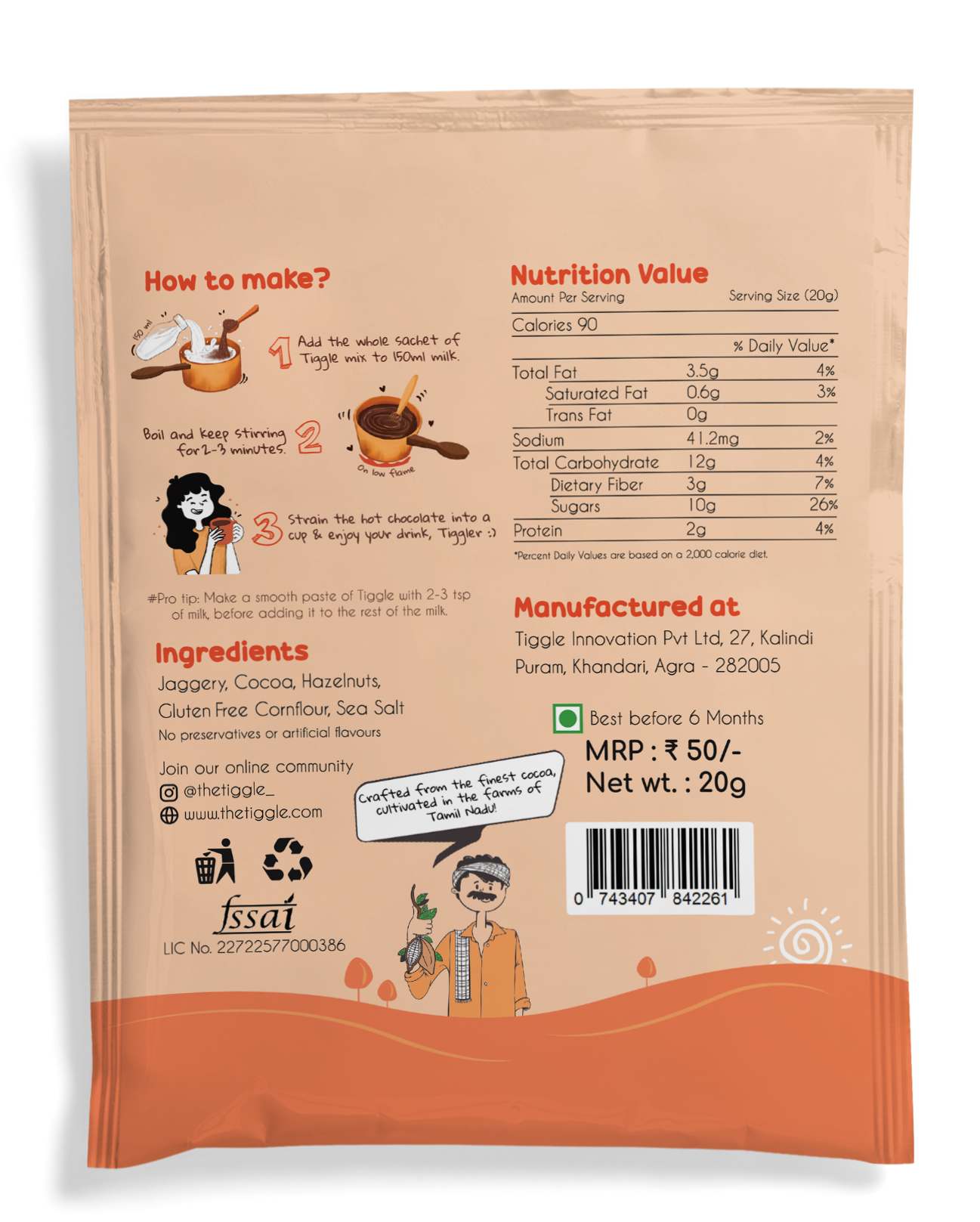Tiggle Hazelnut Hot Chocolate, 20g