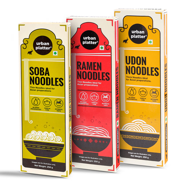 Urban Platter 3 Noodle Combo Pack (Soba, Ramen and Udon Noodles, 250g each)