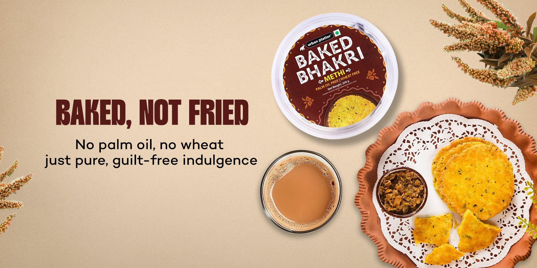 Experience the perfect chai-time companion with Urban Platter Baked Methi Bhakri, a snack that combines tradition with healthy indulgence.