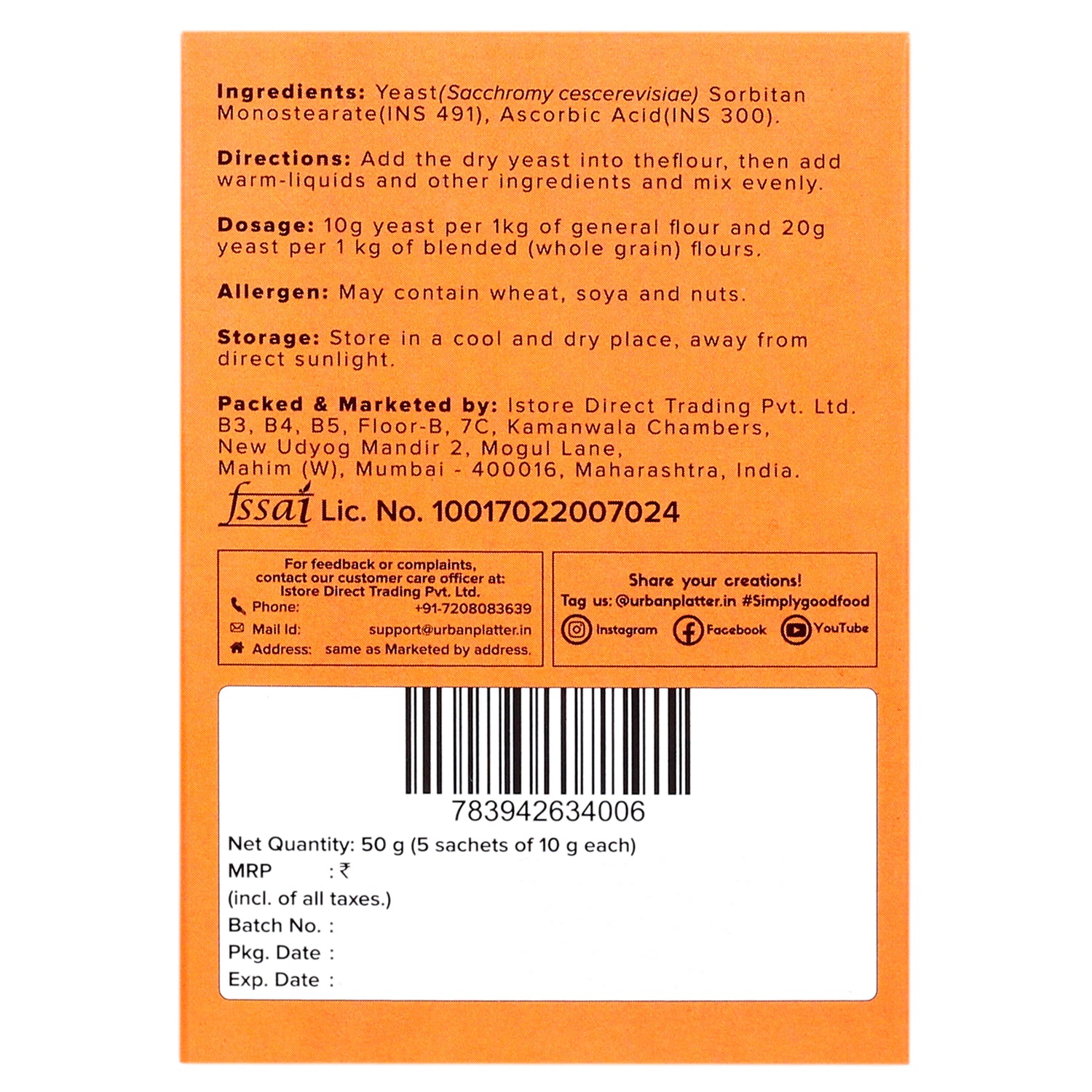 Urban Platter Bakers Active Dry Yeast, 50g (5 Sachets of 10g each)