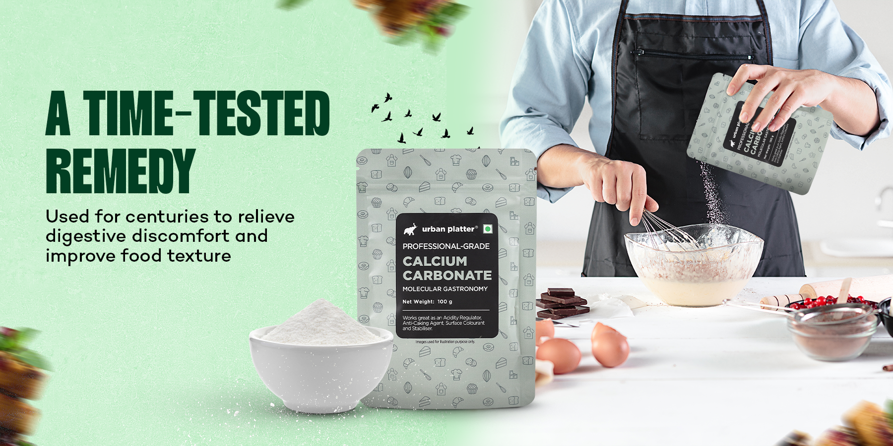 Urban Platter Calcium Carbonate Powder is a versatile, high-quality ingredient perfect for both culinary applications and natural relief for digestive discomfort.
