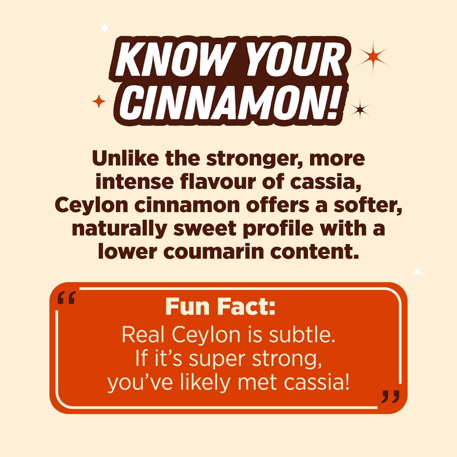 - The True Cinnamon Difference: Ceylon cinnamon comes in thin, multi-layered quills with a sweet, floral aroma and is naturally low in coumarin, a compound linked to liver stress when consumed in high amounts. Cassia is thick and single-layered, with a stronger flavour and naturally high coumarin content.
