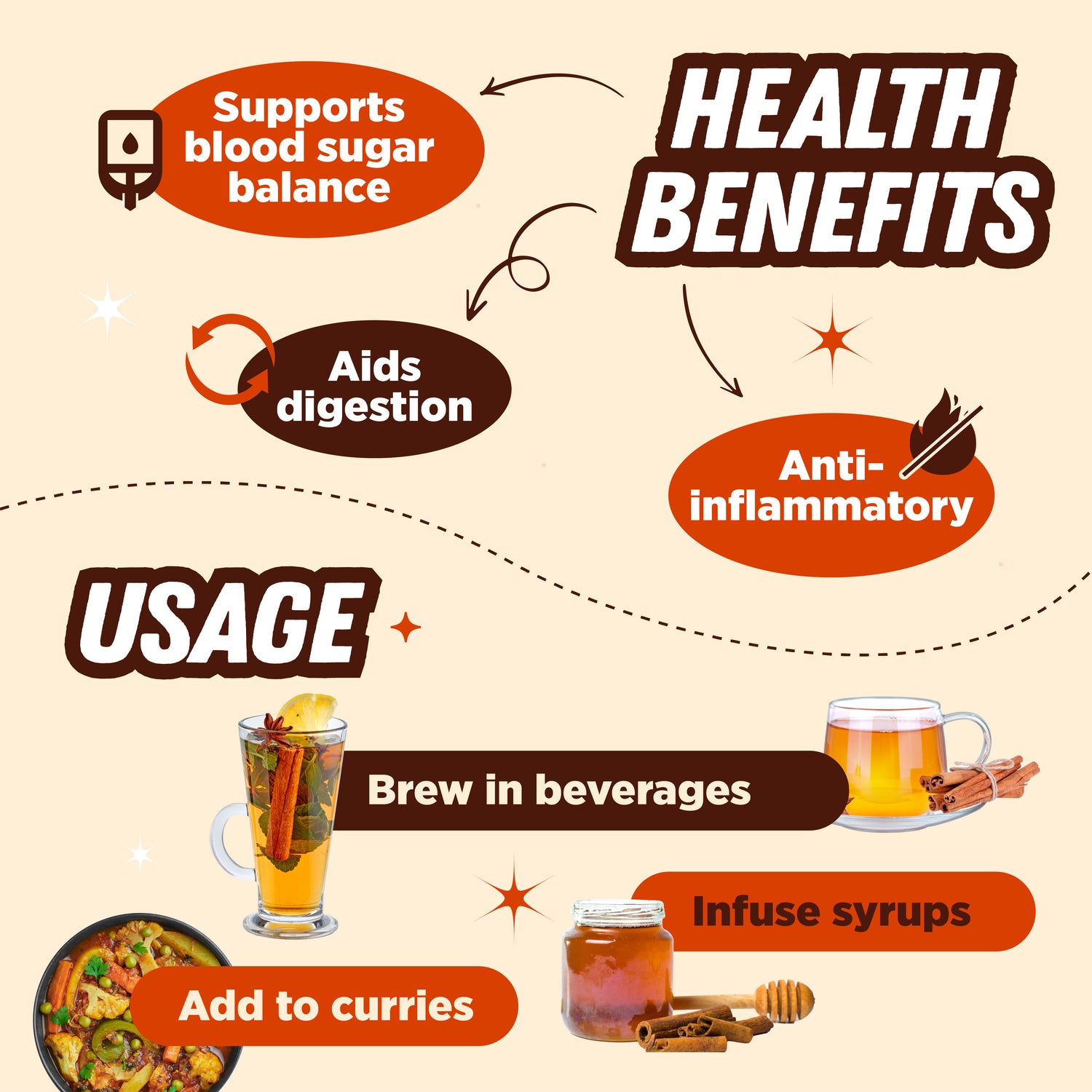 - Gentle on Health with Functional Benefits: Naturally low in coumarin, these quills support digestion, help regulate blood sugar, offer antioxidant protection, and provide mild anti-inflammatory effects, blending wellness into every use.