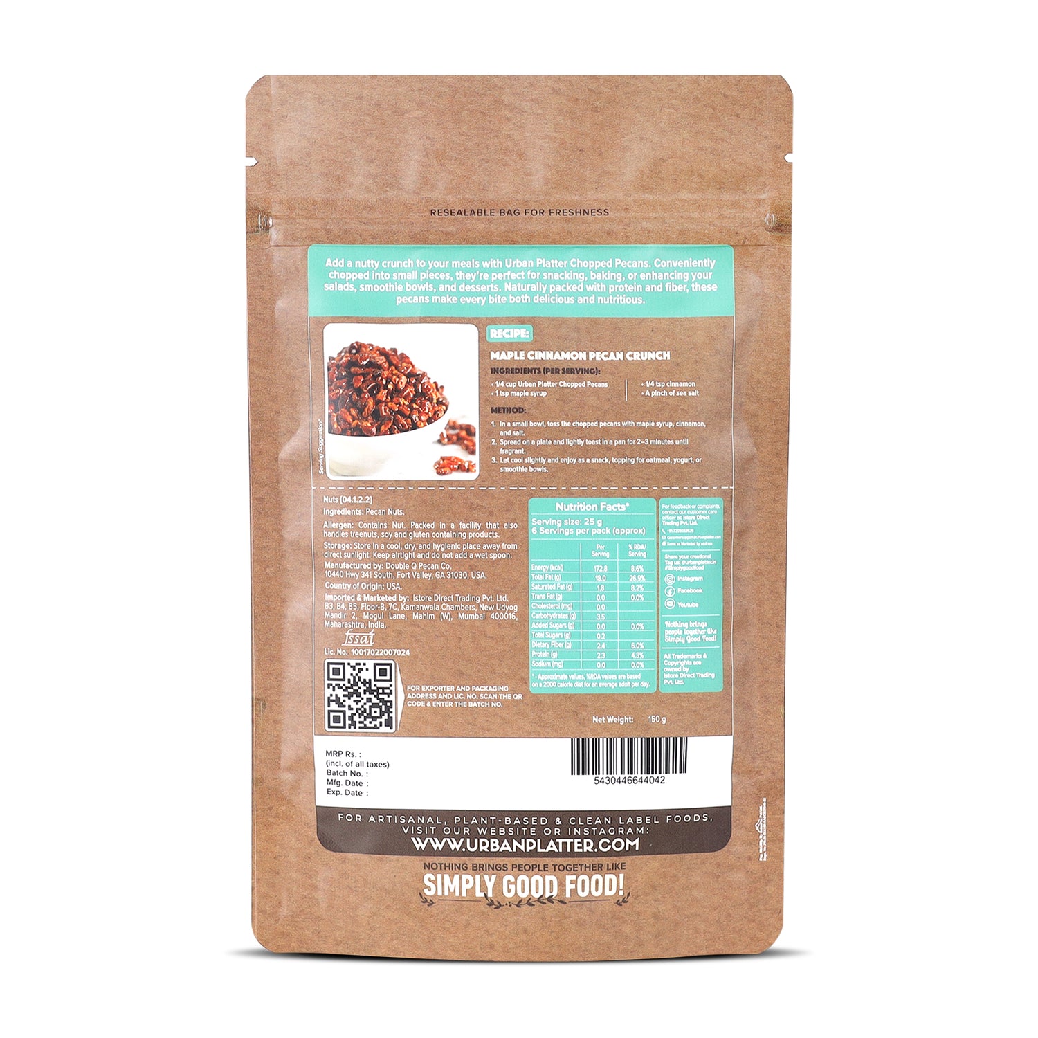 Urban Platter Chopped Pecans, 150g (Imported from the USA | Ideal for Baking, Desserts & Everyday Snacking)