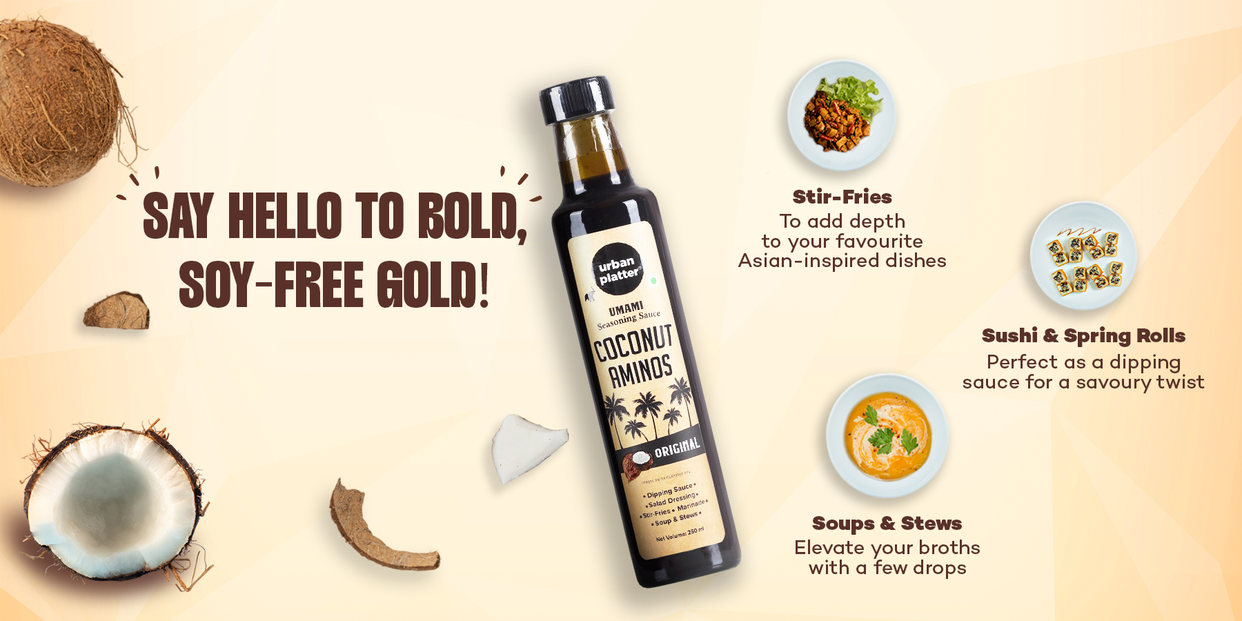 Urban Platter Coconut Aminos, 250 ML (Umami Seasoning Sauce, Soy-free, Gluten-free, Perfect for dipping asian appetizers, for dressings and more)