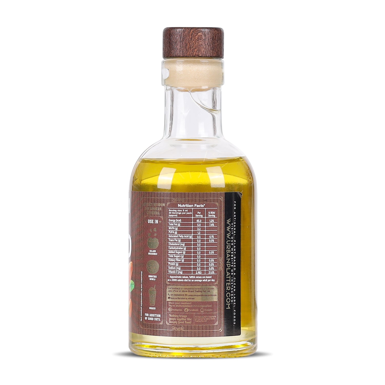 Urban Platter Cold Pressed Almond Oil, 100ml (Light Nutty Finishing Oil for Salads, Drizzling & Gourmet Baking)