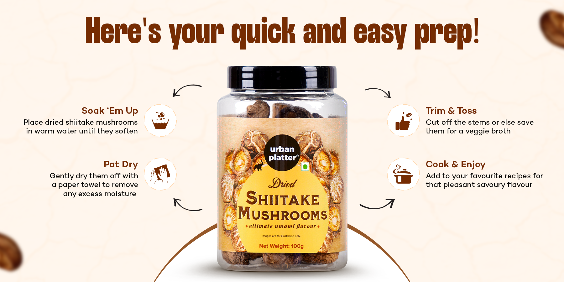 Tap into the irresistible taste with Urban Platters Dried Shiitake Mushrooms!