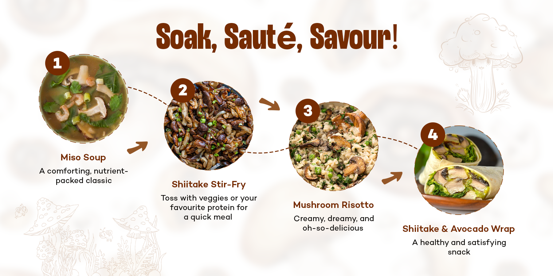 Nutrient Powerhouse: Full of iron, fibre, and antioxidants, shiitake mushrooms bolsters immunity, digestive health, and vitality.