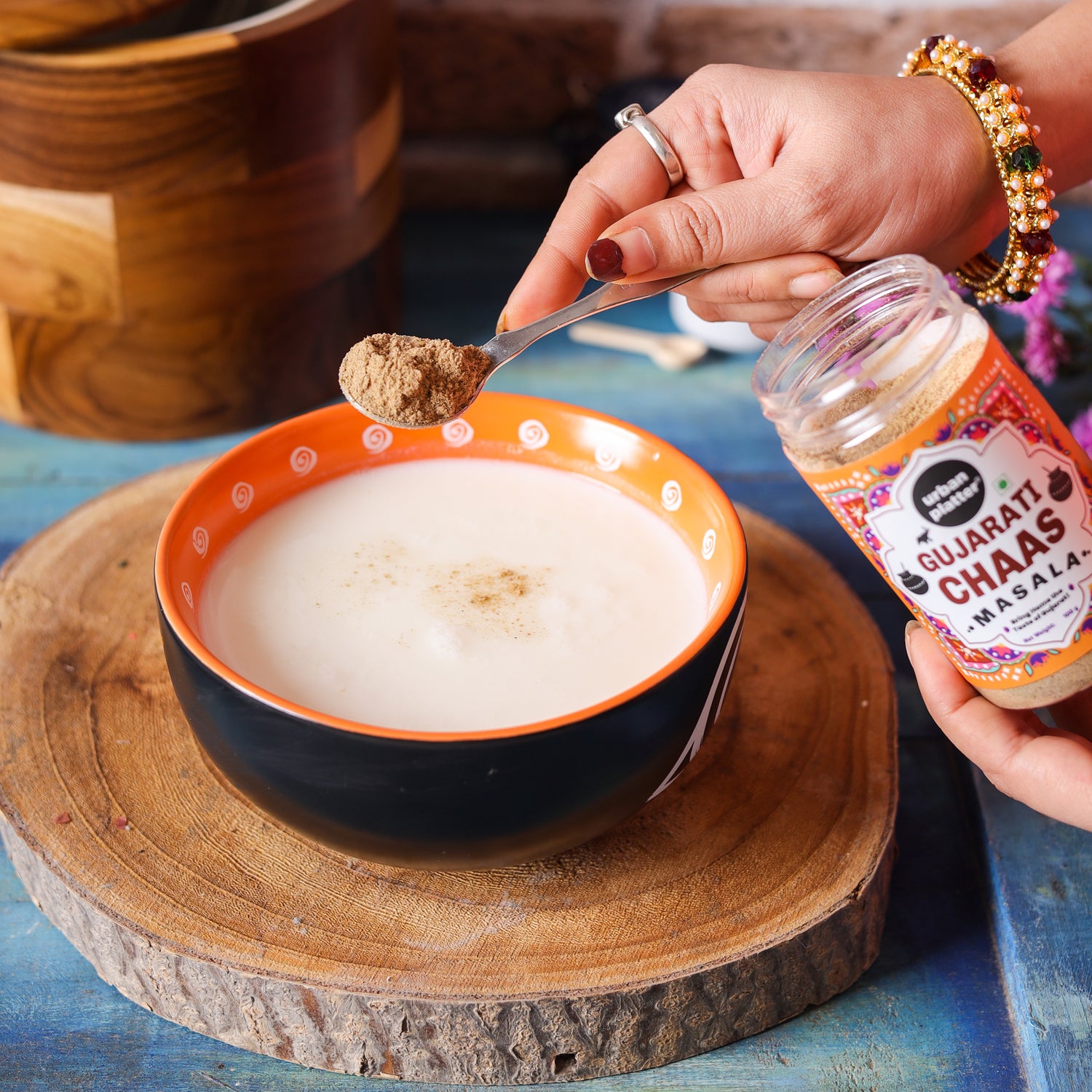 Authentic Gujarati Essence: A careful blend of roasted cumin, earthy black salt, and tangy dried mango powder that captures the soul of traditional chaas. Additive- and preservative-free, it brings you the purity of flavours just as they are cherished in Gujarati kitchens.