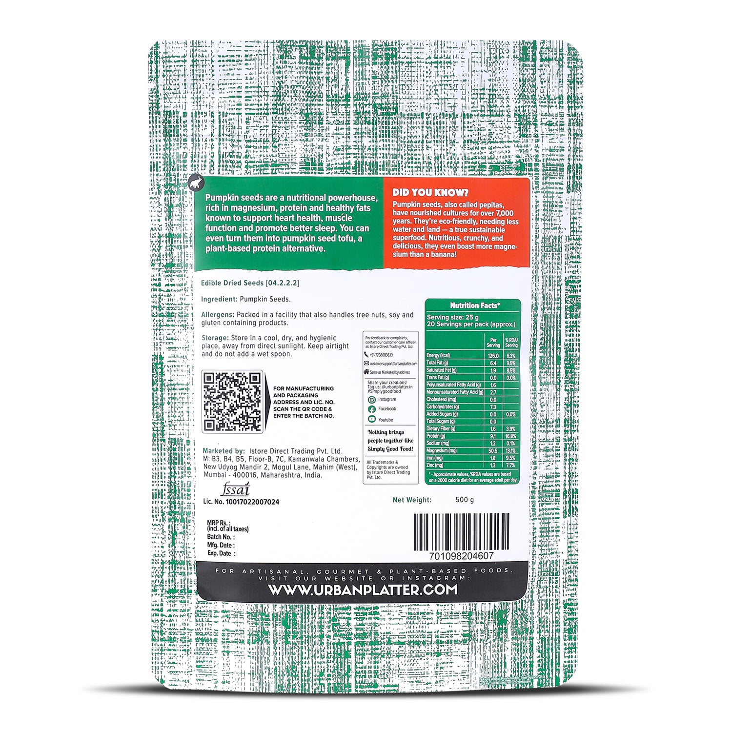 Urban Platter Raw Pumpkin Seeds, 500g (Use in Salads, Trail Mixes, Baked Goods, Granola Bars, Desserts | Keto Diet Friendly | Immunity Booster | Pepitas Seeds | Healthy Superfood Snack)