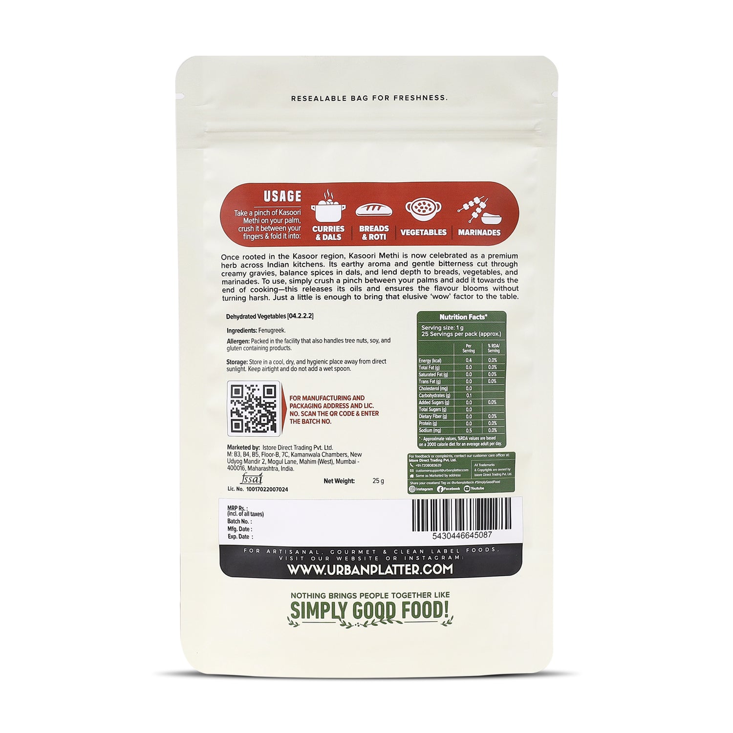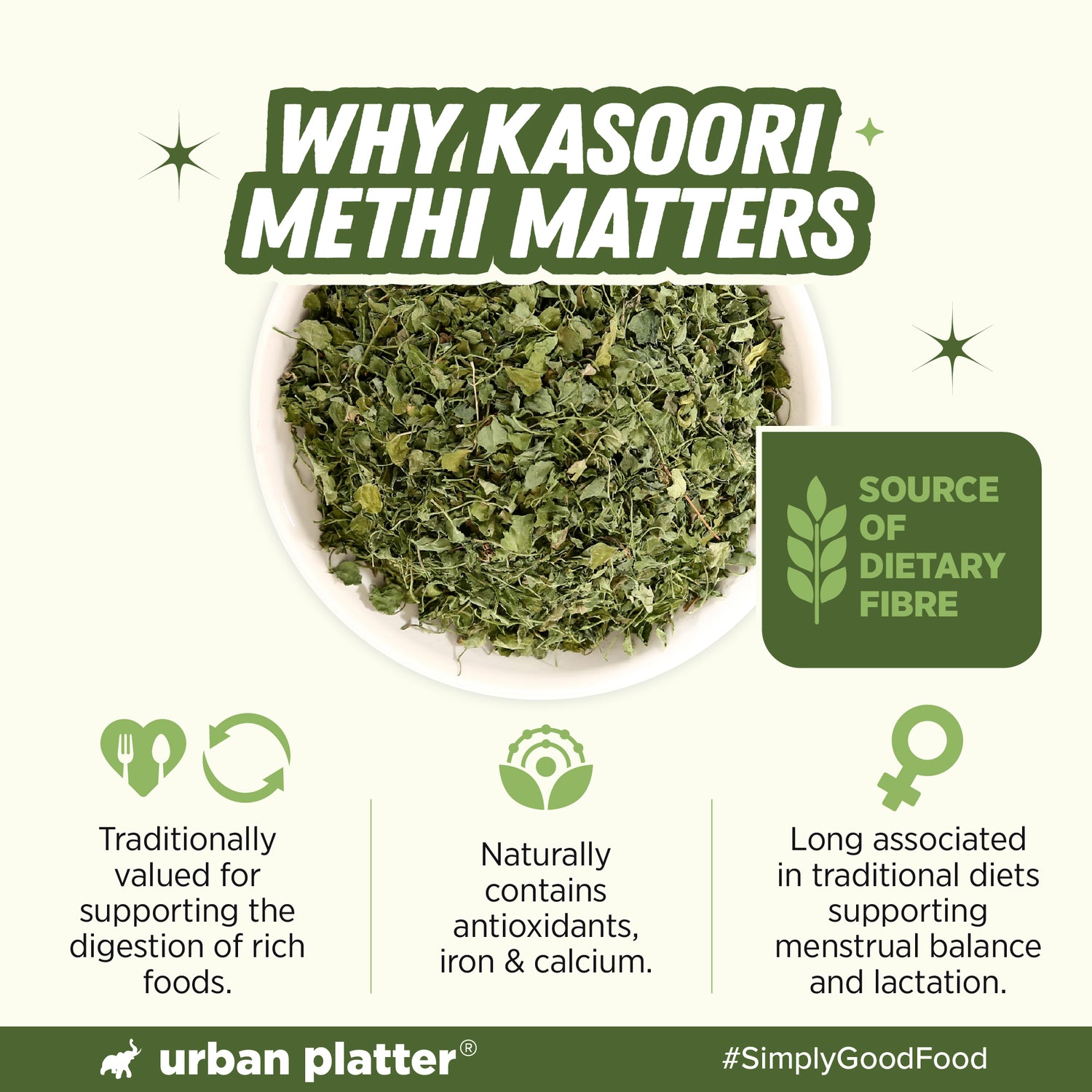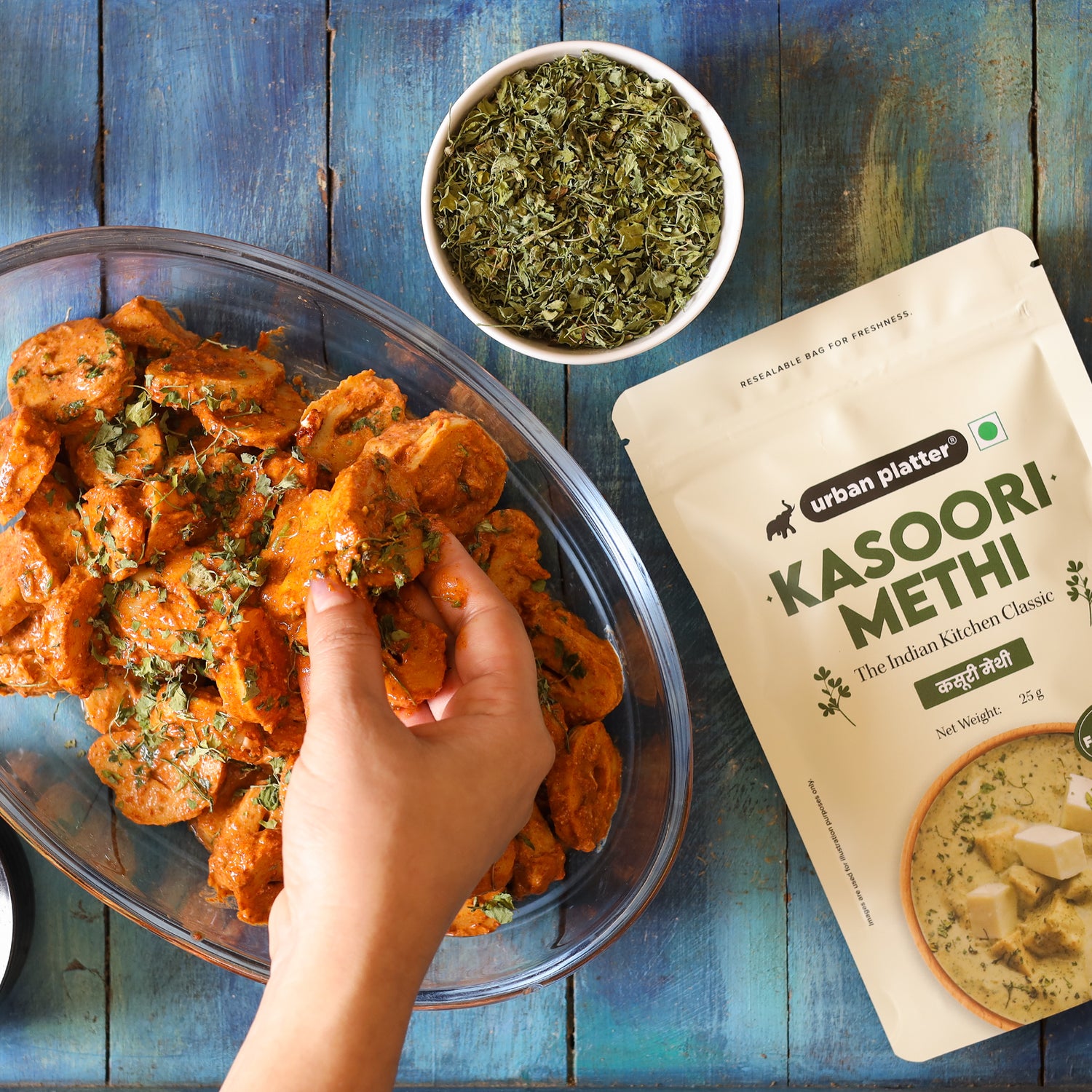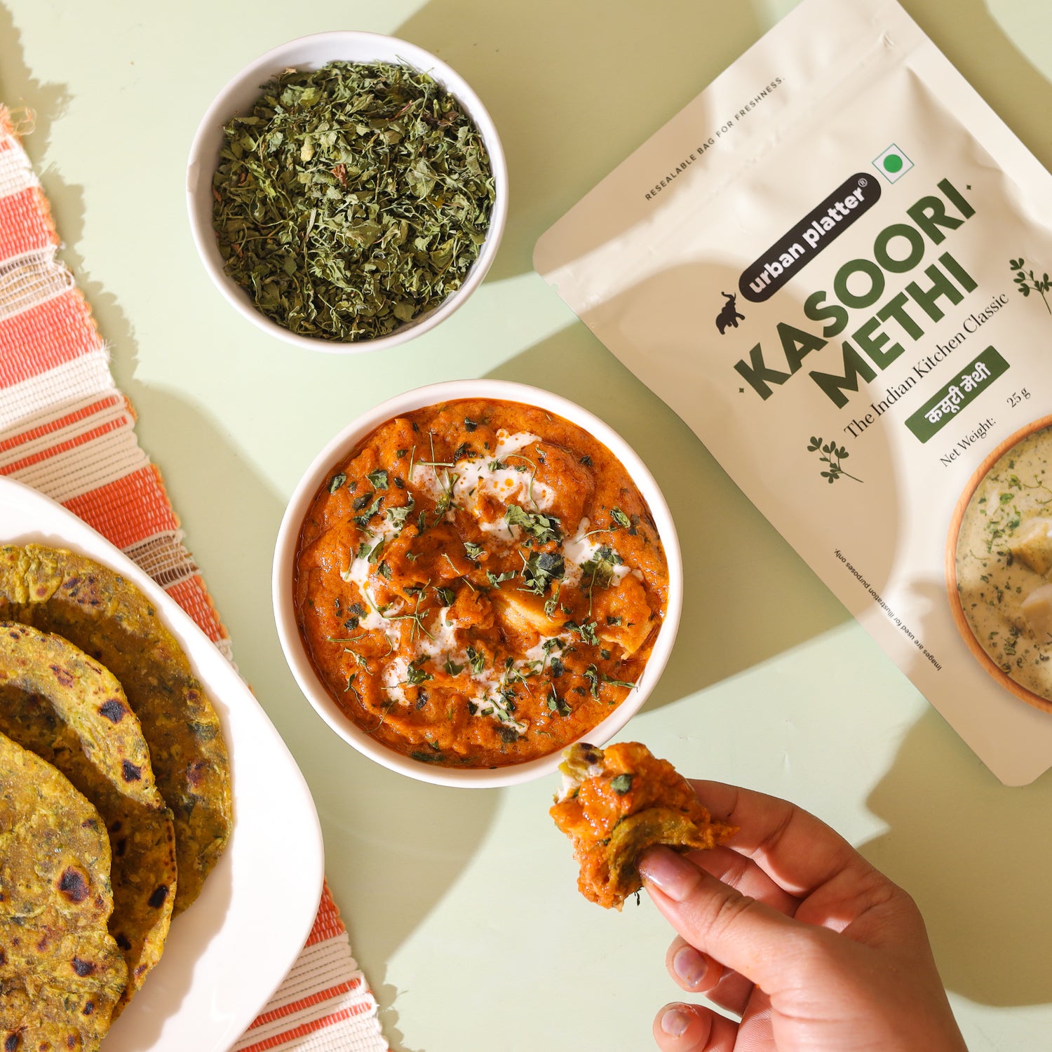 Urban Platter Kasoori Methi, 25g (Dried Fenugreek Leaves, Authentic Indian Herb, Finishing Spice for Curries & Dals)