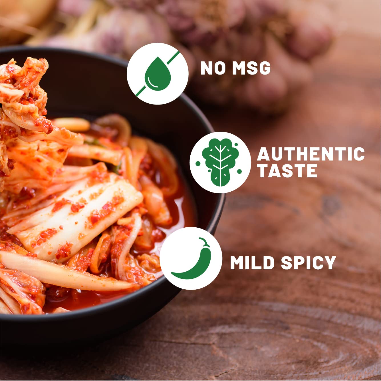 Authentic Korean Kimchi: A traditional Korean recipe made with Nappa cabbage, Gochugaru chilli pepper, ginger, garlic, spring onions, radish, carrot, seaweed, and more.