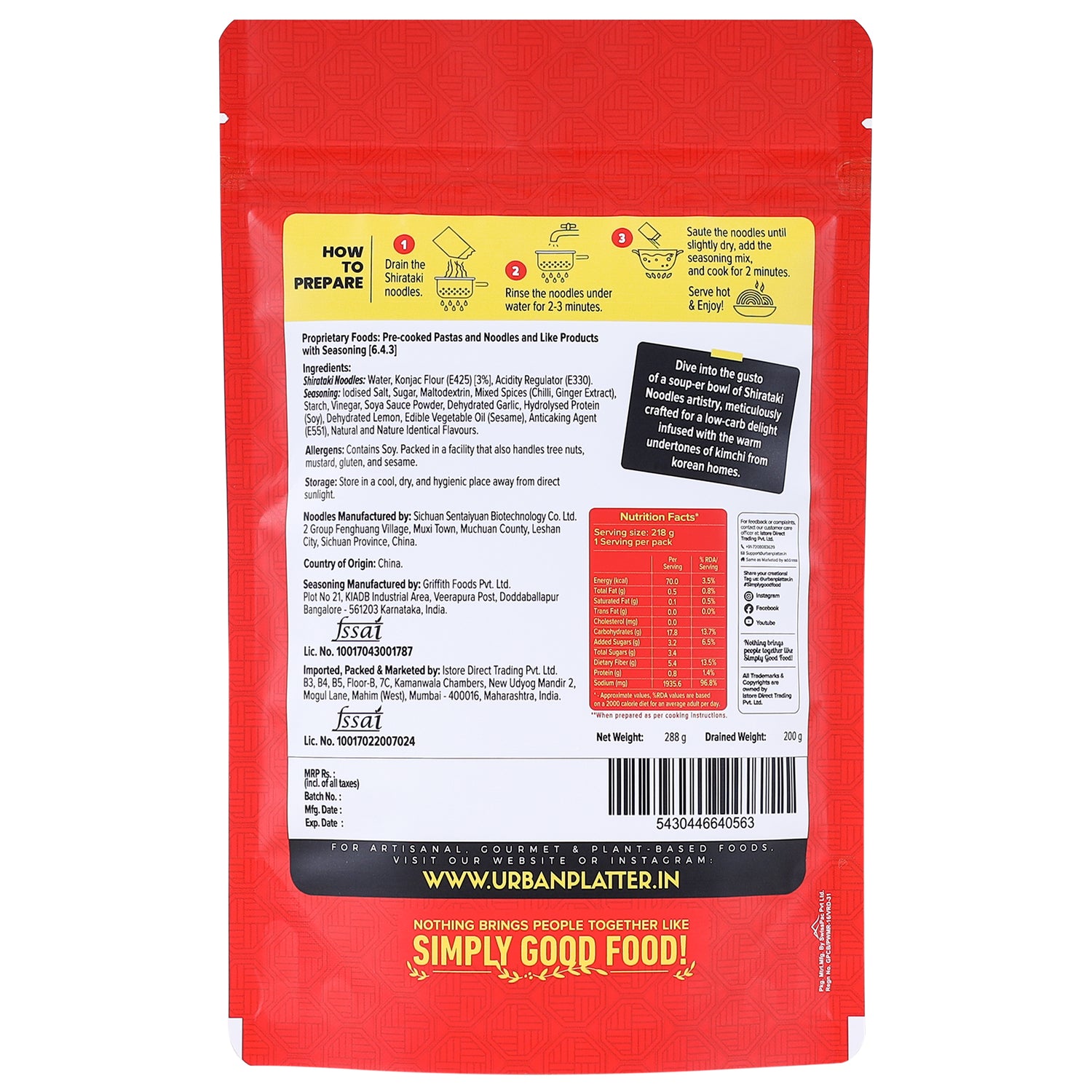 - Instant Low-Carb Noodles & Traditional Kimchi Flair: Craving a mid-day snack? Urban Platter Korean Kimchi Noodles have your back—low carb, and all the flavour! Just rinse, toss, stir in the pre-measured seasoning pouch, and voilà! A steaming bowl of home-style kimchi goodness infused with low-carb noodles, ready to crush those hunger pangs with authentic, spicy flair!