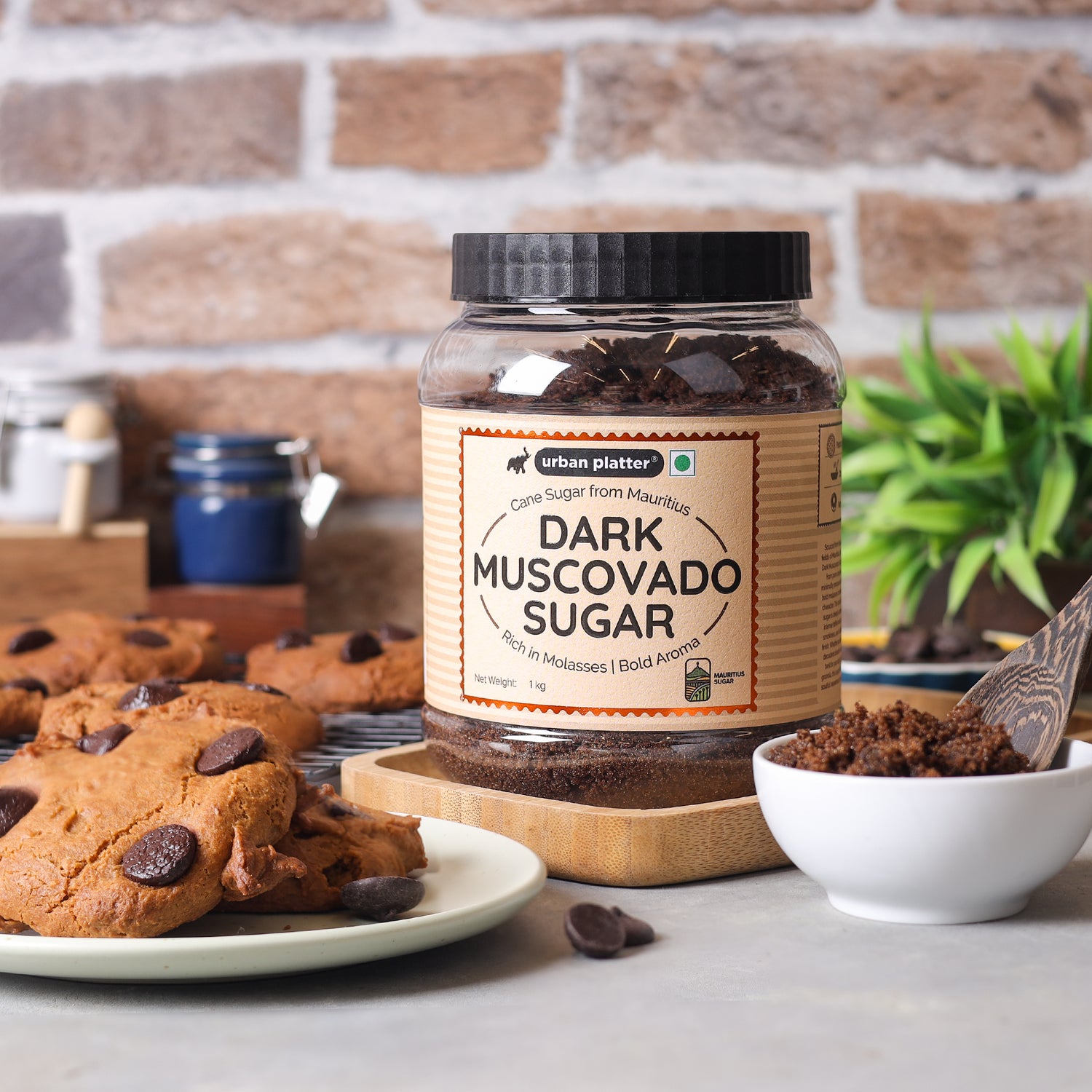 Urban Platter Dark Muscovado Sugar is a deep, molasses-rich sugar with a moist, fine texture and an intense, earthy sweetness. Perfect for rich fruit cakes, gingerbread, marinades, and barbecue sauces, it adds a warm, caramel-like depth to both sweet and savory recipes.