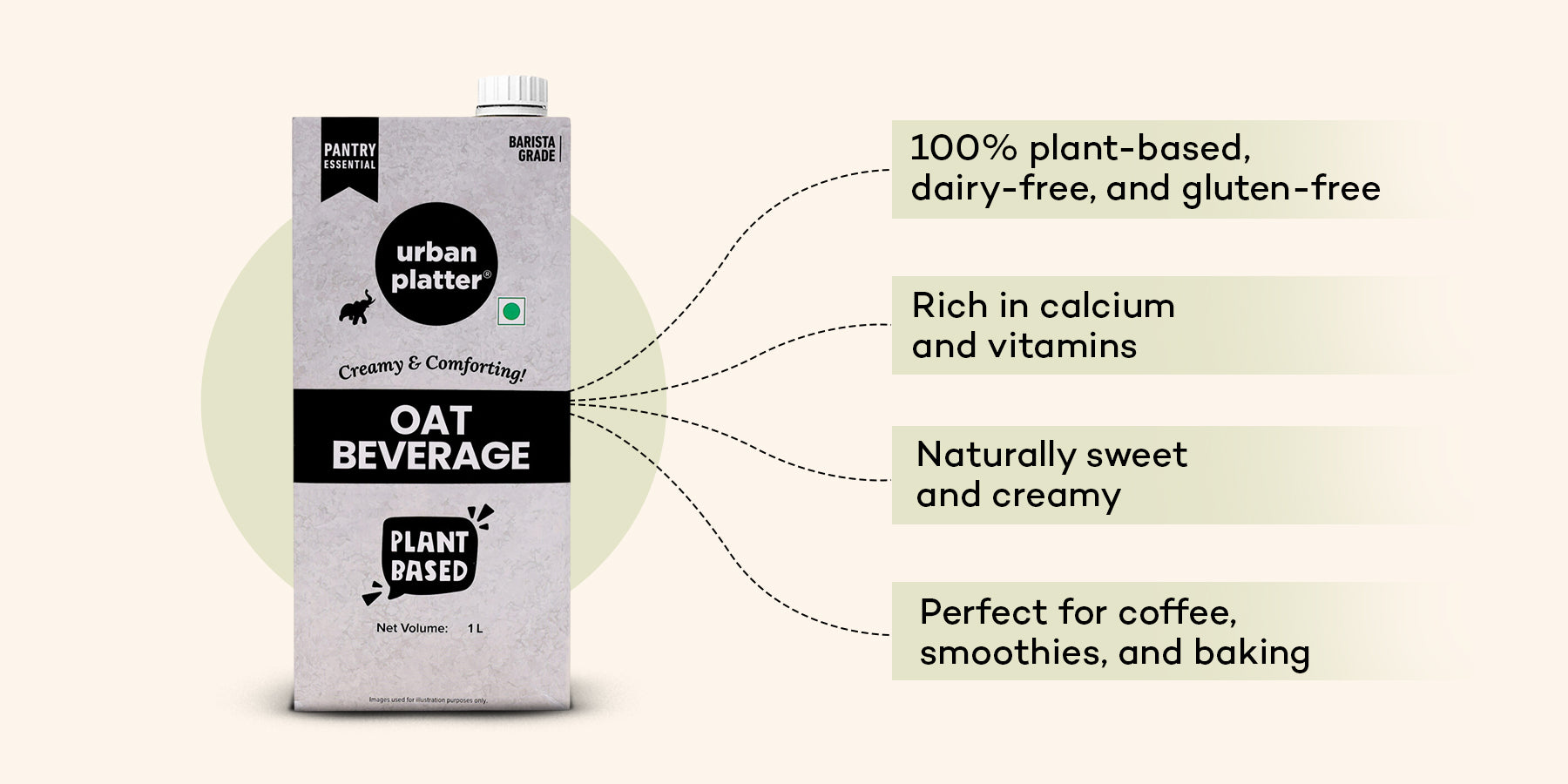 Urban Platter Oat Beverage, 1L (OatWOW | Plant Based | Barista Grade | Daily Pantry Essential | Creamy and Delicious)