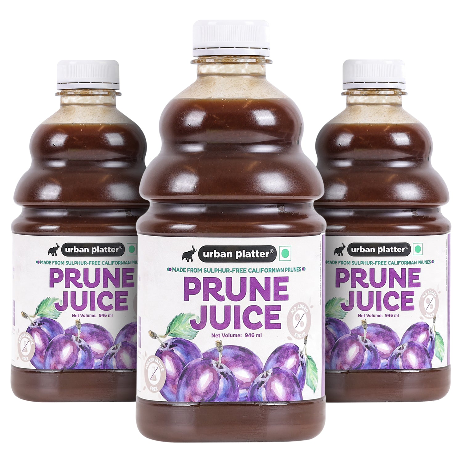 Urban Platter Prune Juice, 946ml (Pack of 3) (Made from 100% Californian Prunes, No preservatives, No Added Sugar, Gut Health Superdrink) Indulge in the naturally sweet and wholesome prune juice, a delightful elixir crafted from the finest, sun-ripened prunes. Bursting with rich flavor and essential nutrients, this premium beverage offers a velvety-smooth experience with every sip. Beyond its delectable taste, prune juice is celebrated for its digestive benefits, promoting a healthy gut and overall well-being. Enjoy it on its own for a moment of pure indulgence or incorporate it into your favorite recipes and smoothies for a delicious twist. Elevate your lifestyle with the goodness of prune juice – a refreshing choice that combines taste, nutrition, and natural vitality in every drop.