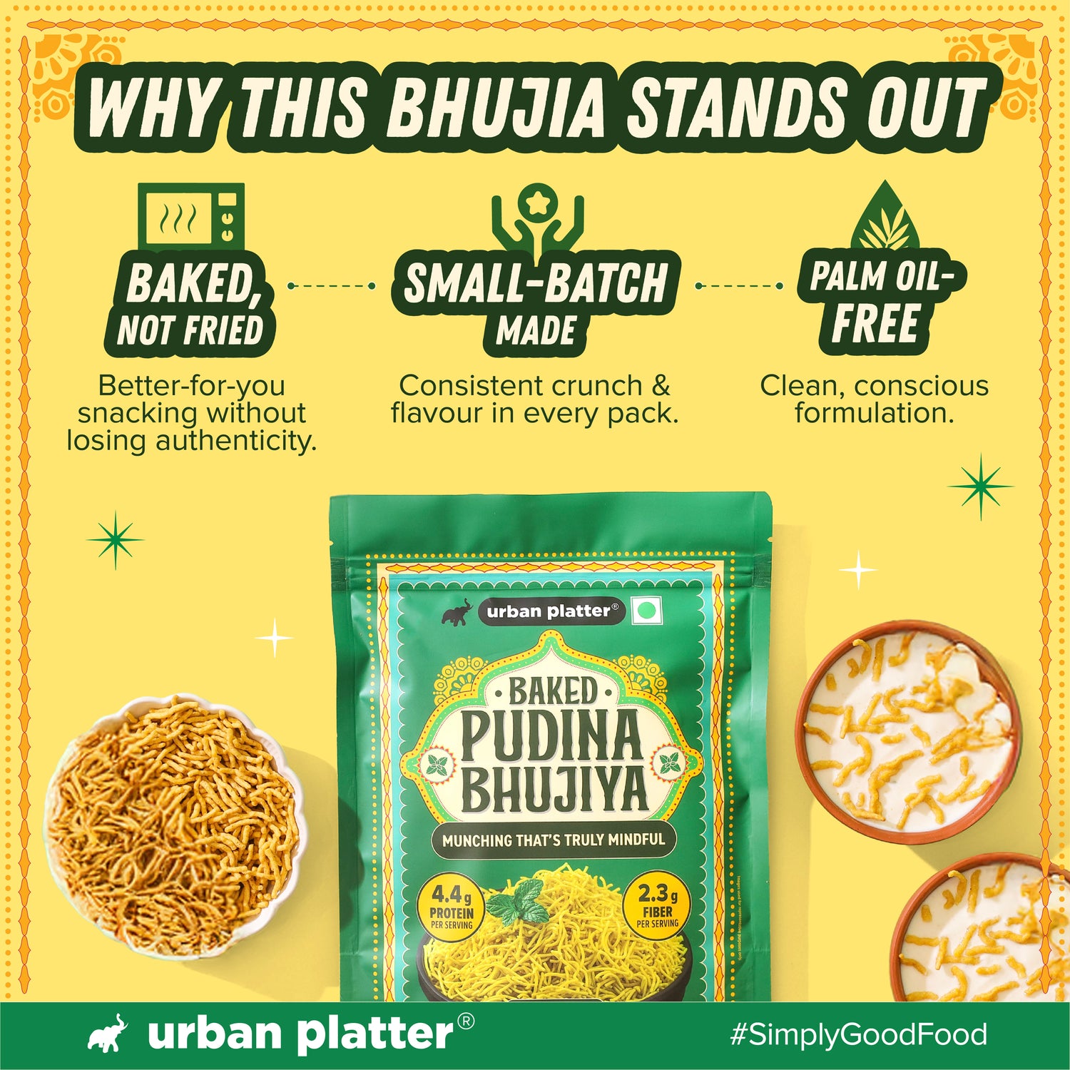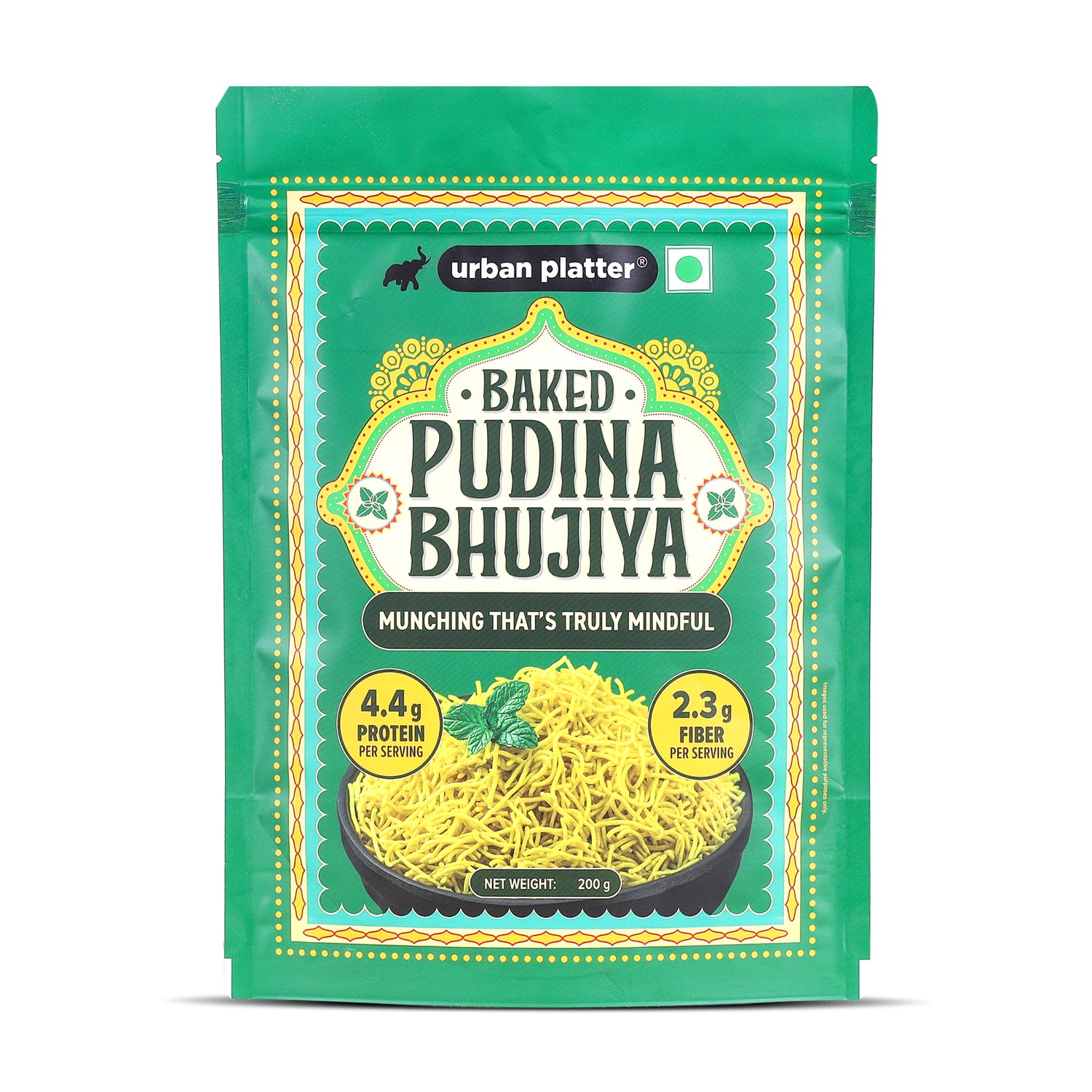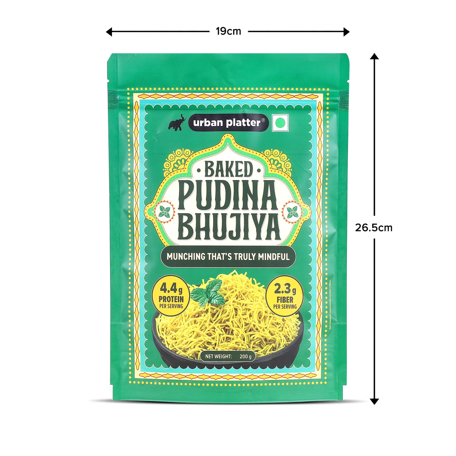 Urban Platter Pudina Baked Bhujiya, 200g (Better-For-You Snack with 4.4g Protein & 2.3g Fibre per Serve; Baked Not Fried)