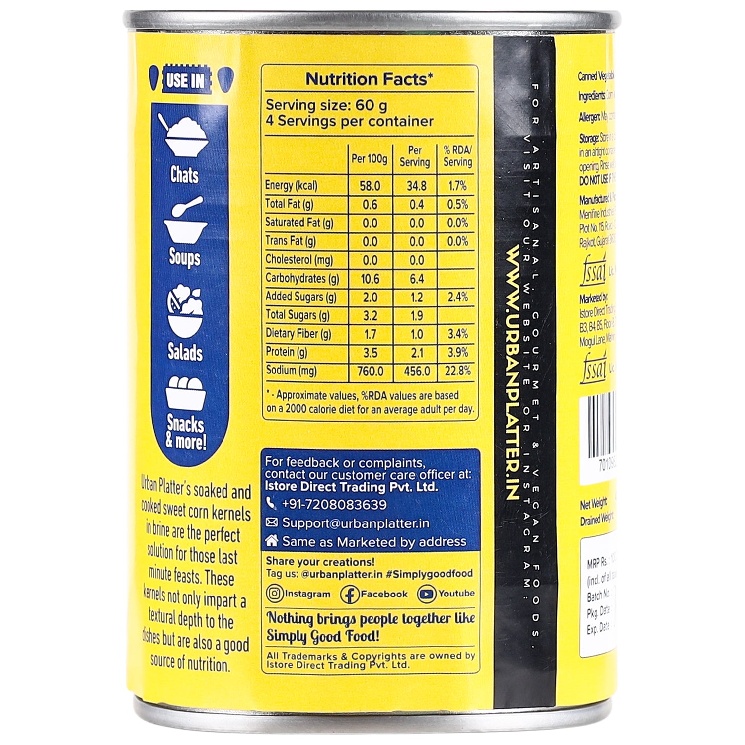 Urban Platter Ready to Use Sweet Corn Kernels in Brine, 400g (Drained Weight 240g)