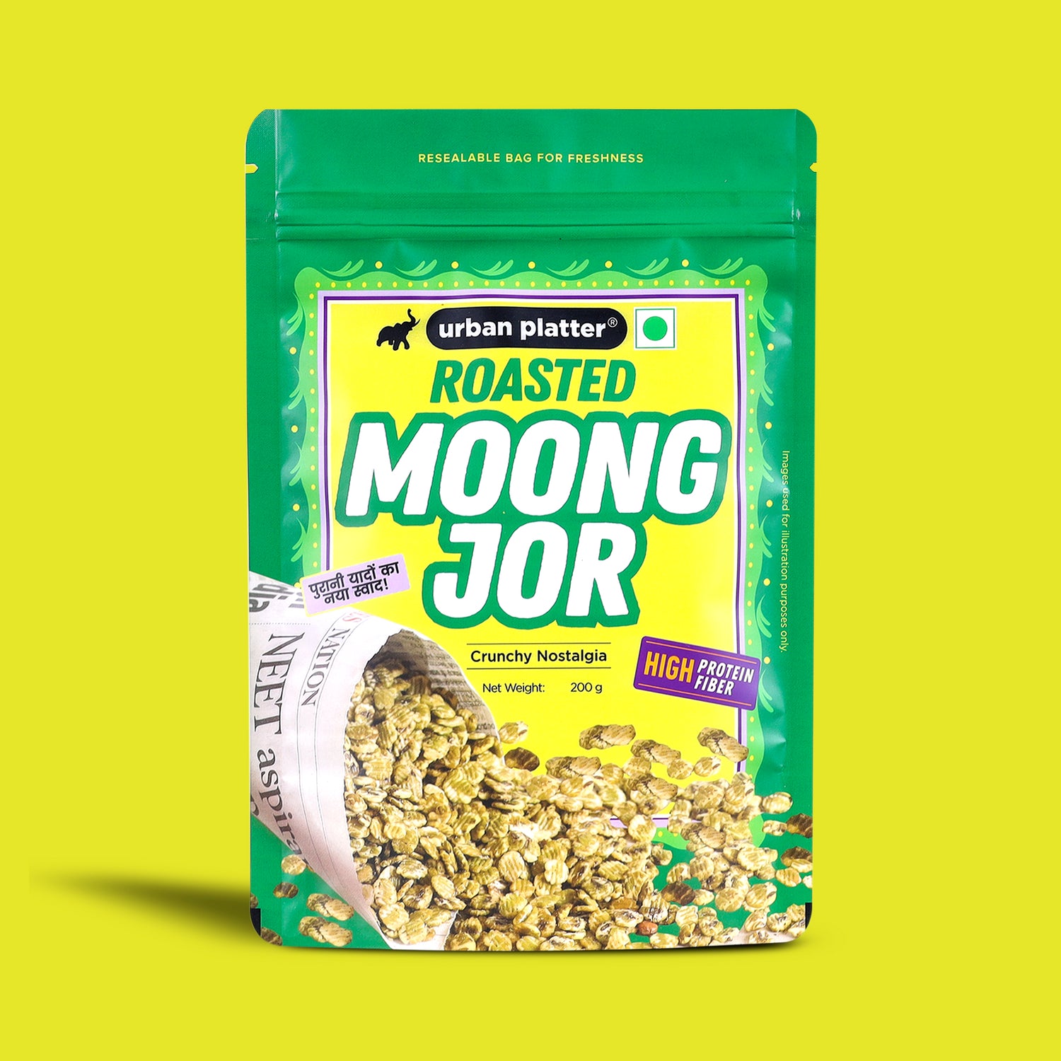 Inspired by the timeless delight of Chana Jor Garam, we set out to create something new—capturing the same crunchy, tangy joy but with a modern, protein-forward twist. Enter Urban Platter Moong Jor Garam: golden, crisp moong lentils, lightly spiced and sizzling with flavor, thoughtfully crafted to meet today’s growing protein needs. Shared during tea breaks or savored at your desk, every bite sparks delight while delivering a natural boost of plant-based protein. It’s seasoned cleanly—with no palm oil, no preservatives, and no compromise. Each handful bridges nostalgia with mindful nutrition, offering the same familiar crunch in a lighter, more nourishing form. Perfect for your desk, picnic, or moments with friends, this snack fuels both flavor and energy—making every munch purposeful, joyful, and wholesome. Urban Platter Moong Jor Garam—where nostalgia meets modern mindful munching.