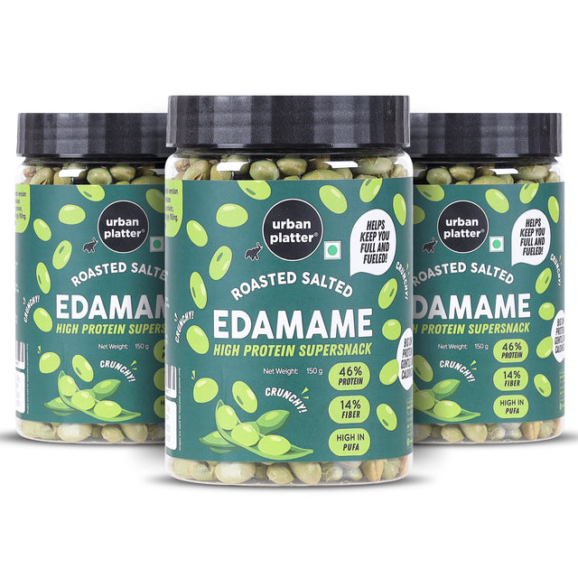 Urban Platter Roasted Salted Edamame, 150g, Pack of 3 (46% Protein, 17% Fiber, Lightly Salted Young Green Soybeans, Highest Plant Protein Supersnack)