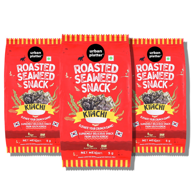 Urban Platter Roasted Seaweed Snack - Kimchi, 5g (Pack of 3, Ready to eat snack | Crispy Umami Nori Chips | Spicy Kimchi Flavour)
