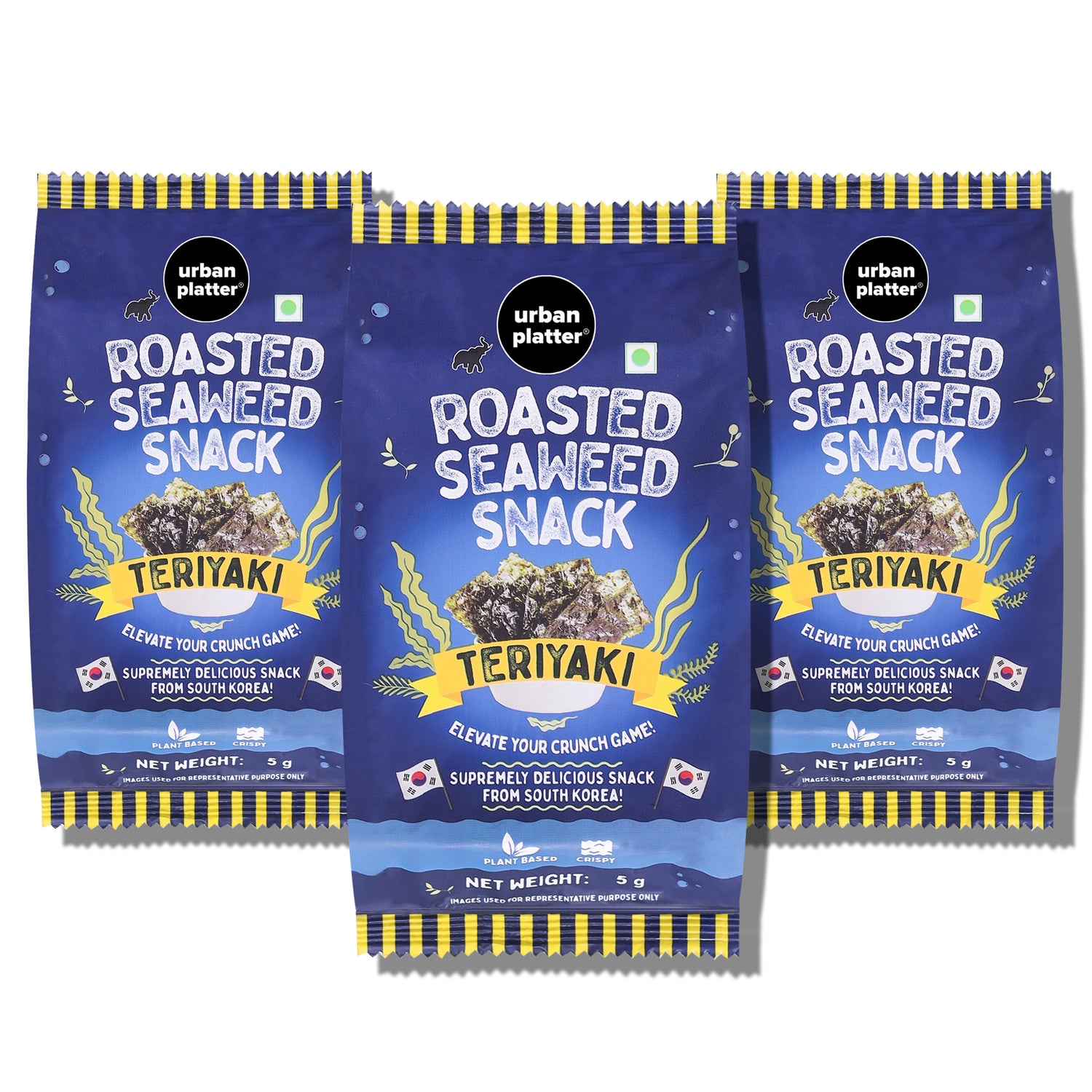 Urban Platter Roasted Seaweed Snack - Teriyaki, 5g (Pack of 3, Ready to eat snack | Crispy Umami Nori Chips | Spicy Teriyaki Flavour)