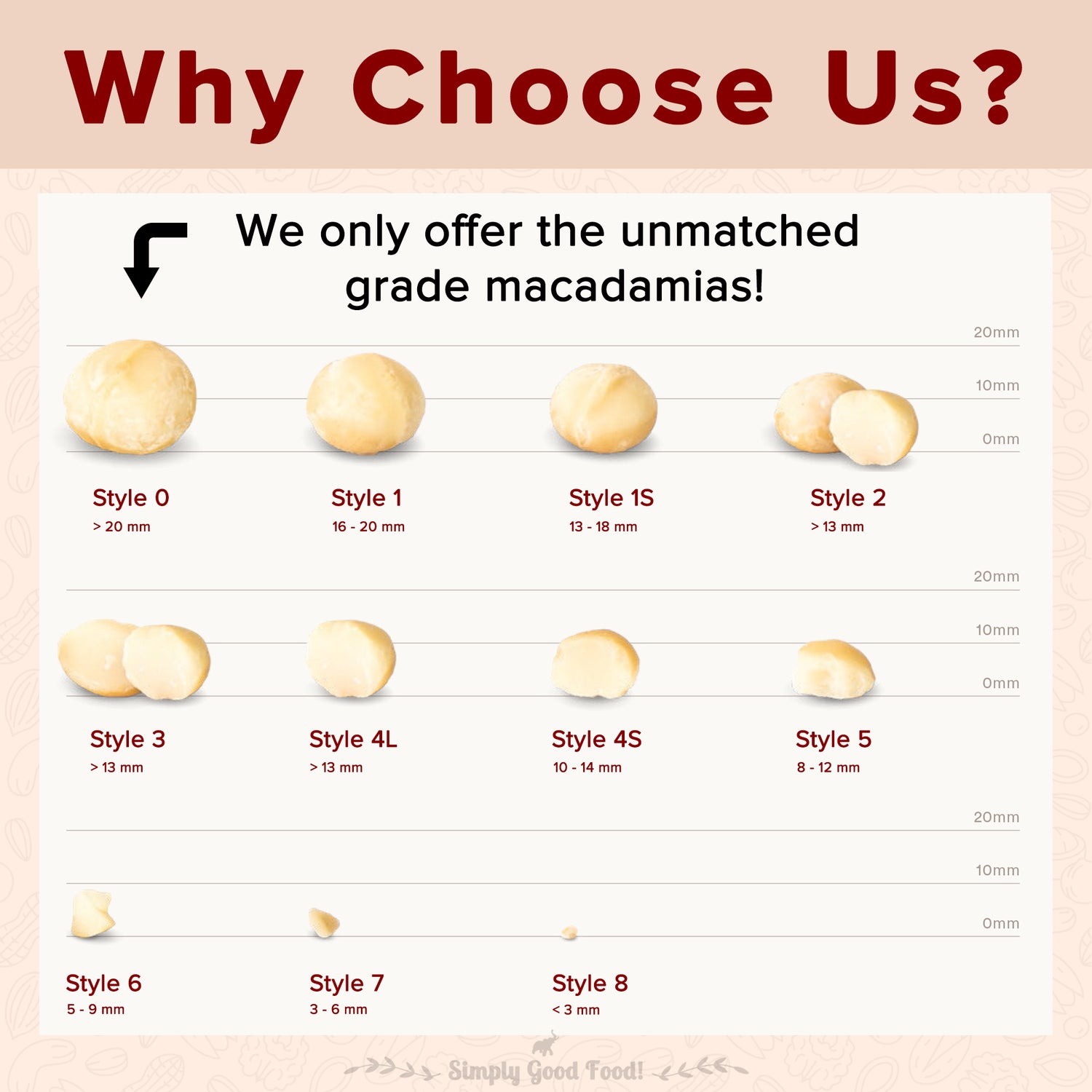 - OUR MACADAMIAS - These are hand-selected Grade A premium nuts. Dry roasting instead of cooking in oil is a hearty alternative and enhances the nuts unique buttery flavor.