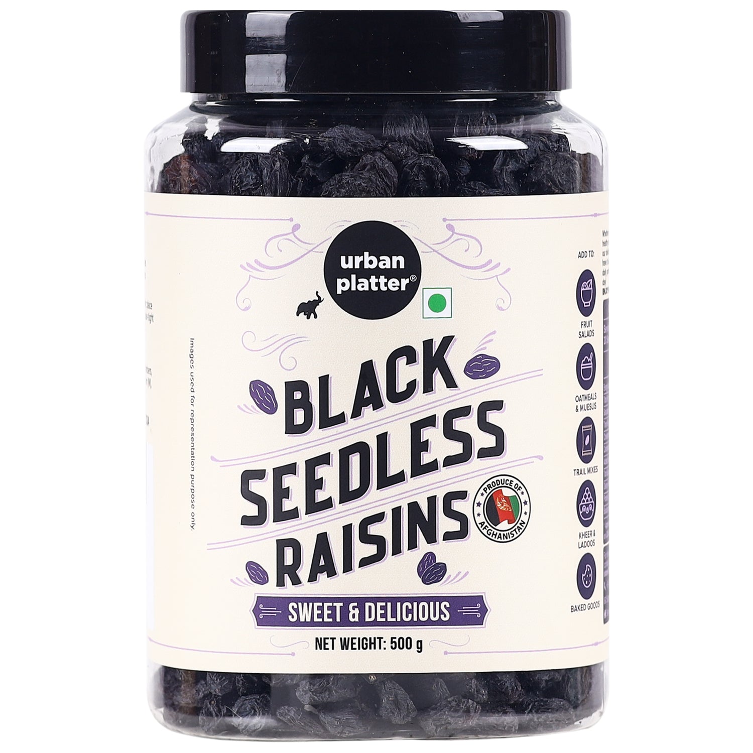 Urban Platter Seedless Black Raisins, 500g (Garnish or Add to Fruit Salads, Oatmeals, Mueslis, Trail Mixes, Ice creams, Baked Goods, Kheer & Ladoos)