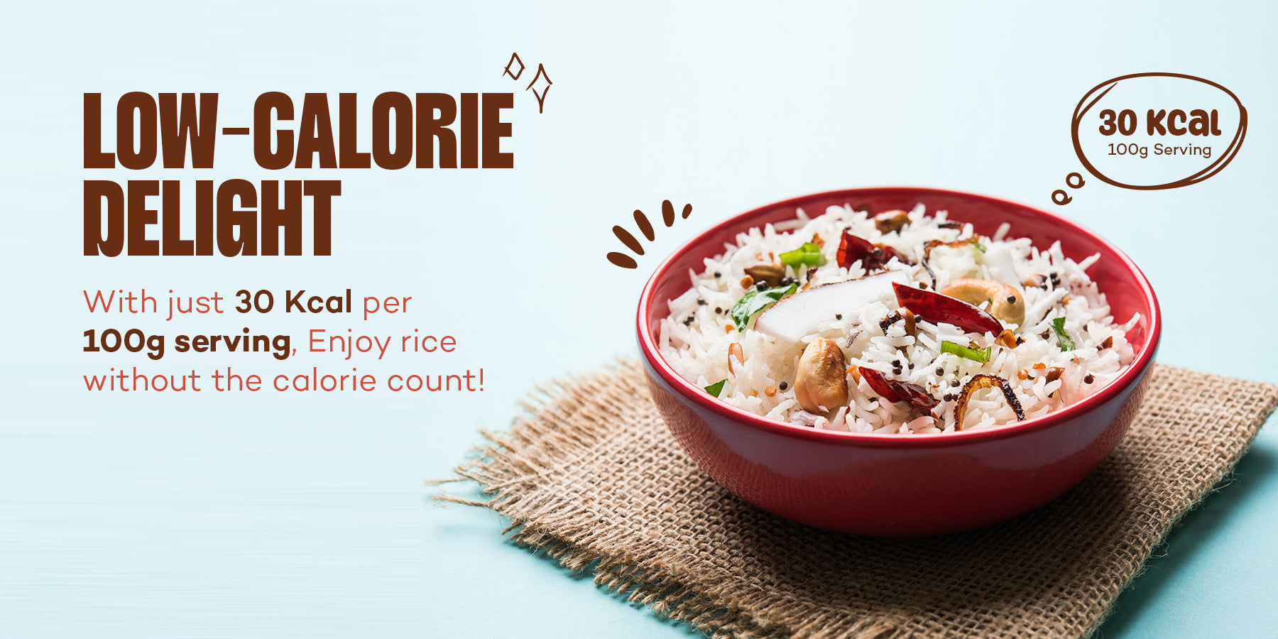 Low-Calorie: With just 30 kcal per 100g serving, this rice offers all the satisfaction without the calorie overload, perfect for those watching their carb intake.