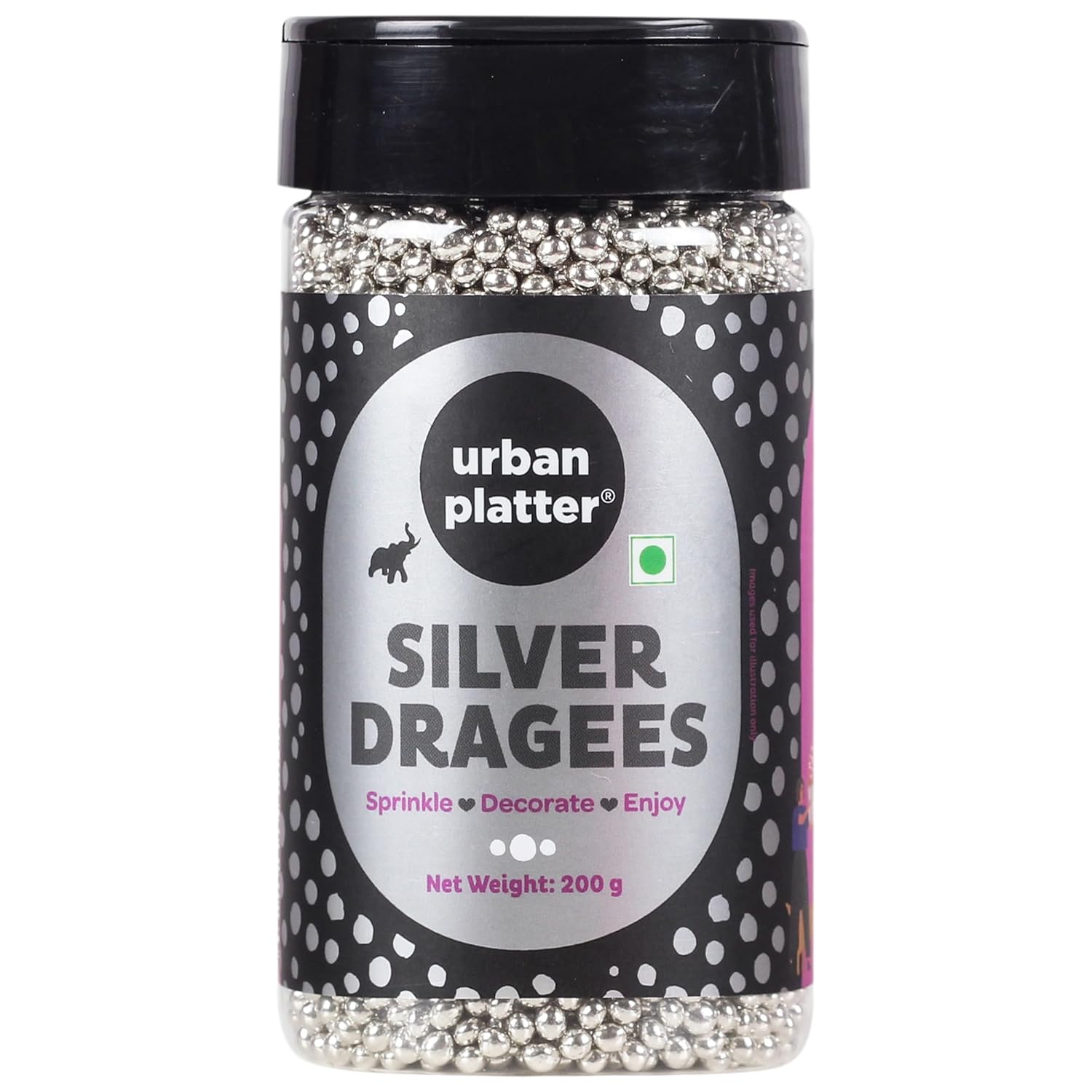 Urban Platter Silver Dragees, 200g (Dairy-Free Tiny Decorative Silver Sprinkle Balls for Cupcakes, Cakes, Brownies, Doughnuts, Cookies and Ice Creams)