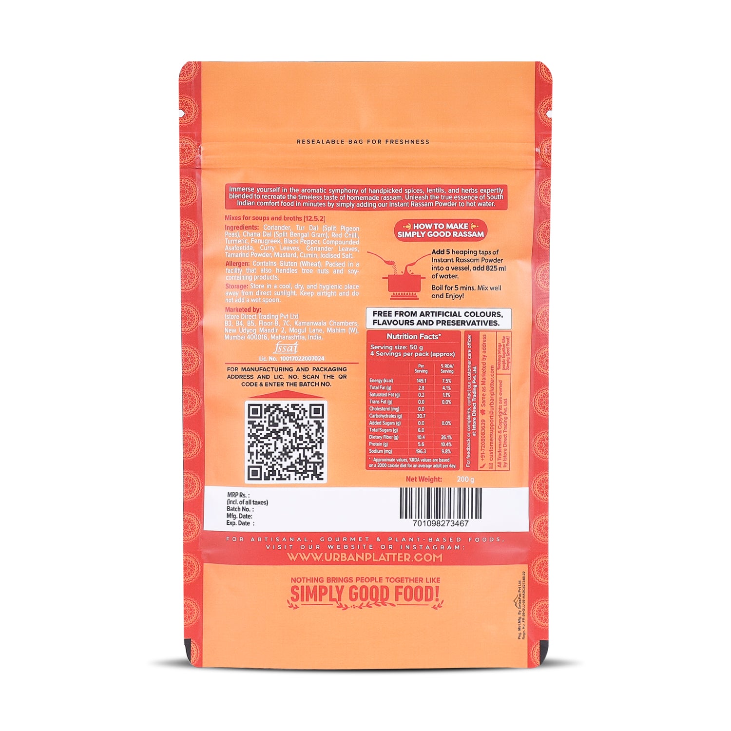 Urban Platter South Indian Style Instant Rassam Powder, 200g / 7oz [Spicy Lentil Soup, Just Add Water & Cook Rasam]