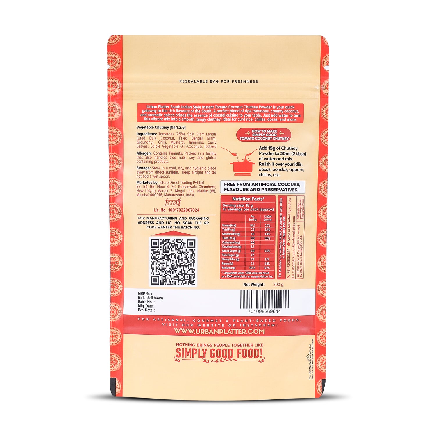Urban Platter South Indian Style Instant Tomato Coconut Chutney Powder, 200g / 7oz [Nariyal ki Chutney, Just Add Water]