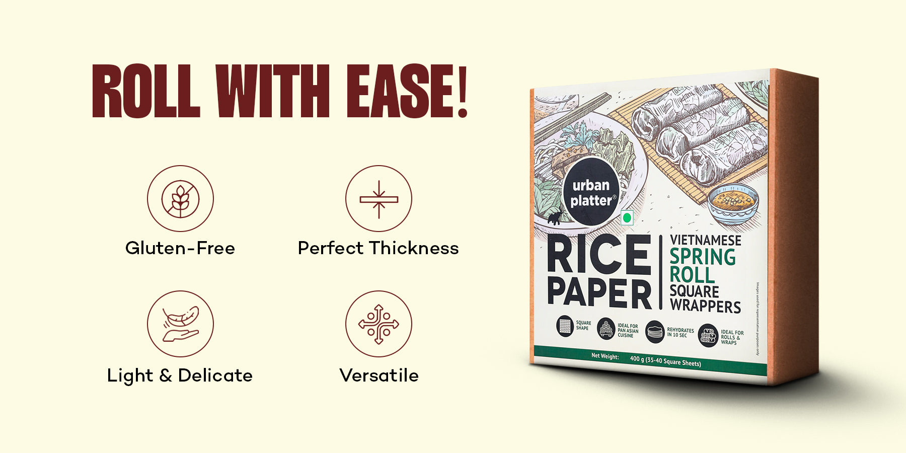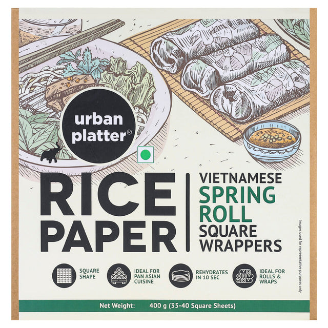 Urban Platter Square Rice Paper Sheets, 400g (Vietnamese Spring Roll Wrappers | Gluten Free | 22 cm each | Easy To Roll) is backordered and will ship as soon as it is back in stock.