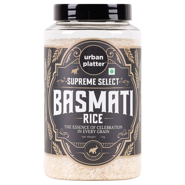 Urban Platter Supreme Select Basmati Rice, 1kg (Rich Aroma | Strong Flavour | Fluffy Long Grain | Non-Sticky)