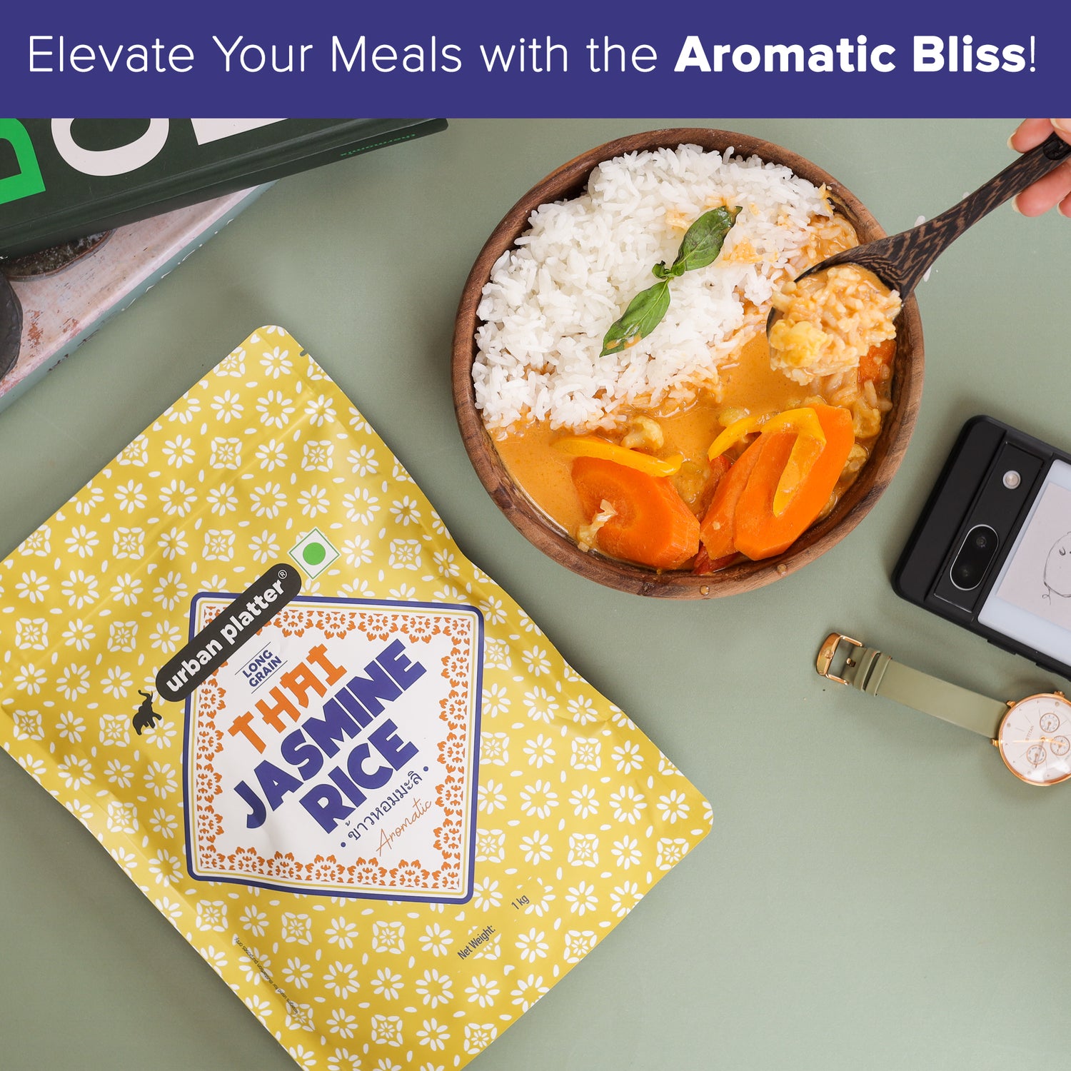 Urban Platter Thai Jasmine Rice, 1kg (Long Grain | Aromatic and Soft | Thai Cuisine)