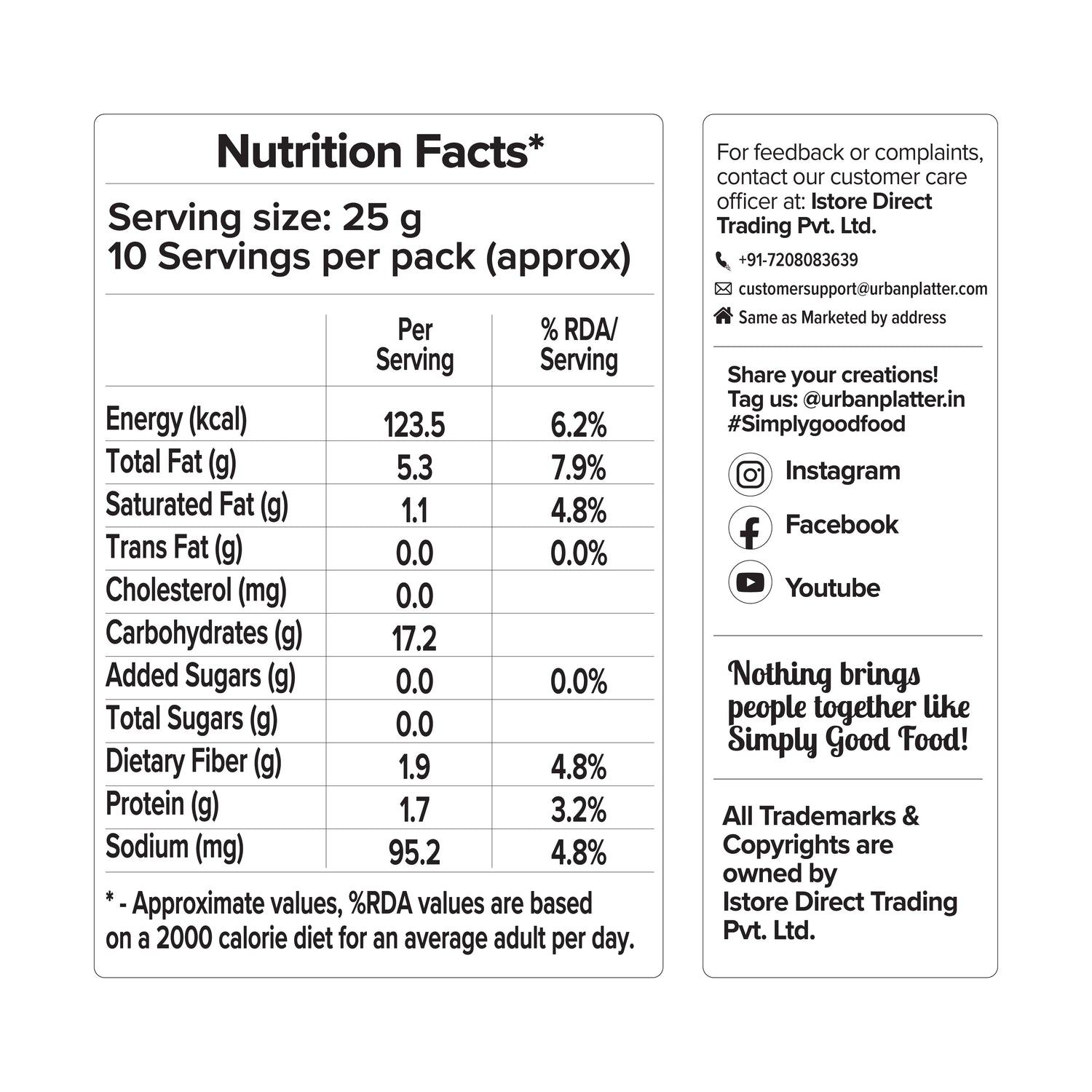 Urban Platter Tortilla Chips, 250g (Made with Masa Flour | Palm Oil Free | Gluten Free | Lightly Salted Nacho Chips) is backordered and will ship as soon as it is back in stock.